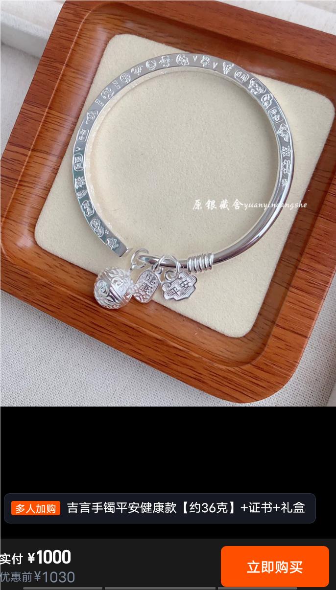 银价最近也是飞涨,2024年买的一个吉言银手镯,36克,当时花了300元,现在同