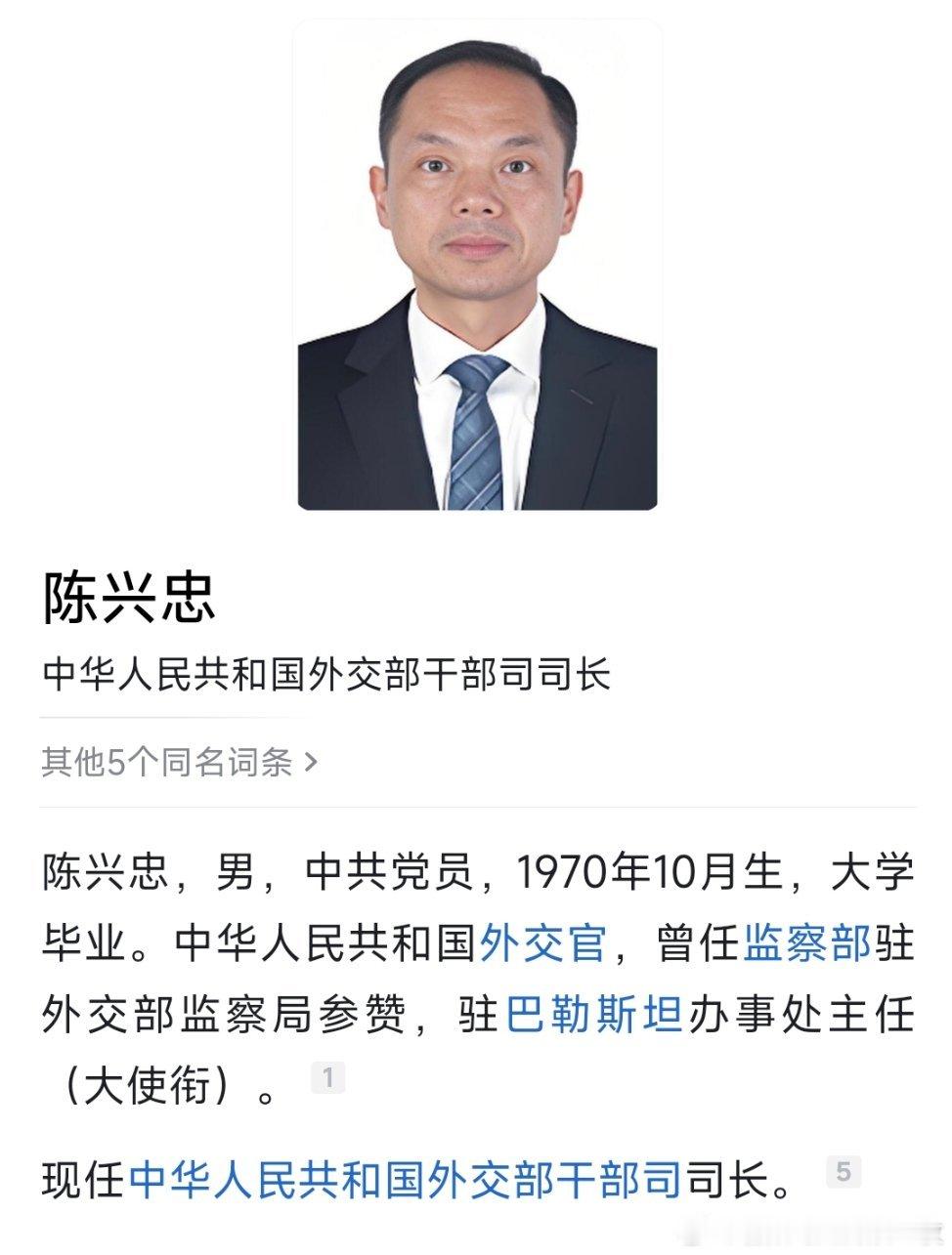 陈兴忠已任外交部干部司司长。