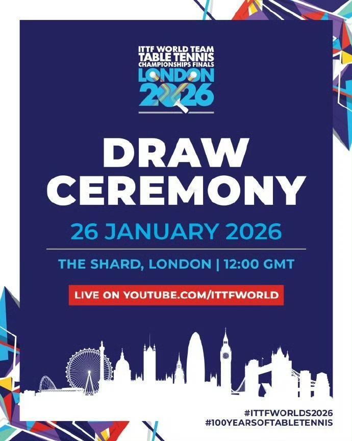 哇塞!还有三个月才开战,现在马上就要抽签了! 真的吗[笑哭]? 是真的!2026年伦敦世乒赛抽签仪式将于1月26日晚八点(北京时间)举行。 2月4日的亚洲杯比赛都没确定哪天抽签呢,四月底的世乒赛的签位就要来了[允悲]。 不过这个抽签估计是世界排名第8到第64的协会(东道主除外)要打小组赛,是为安排小组赛抽的签[笑哭]。