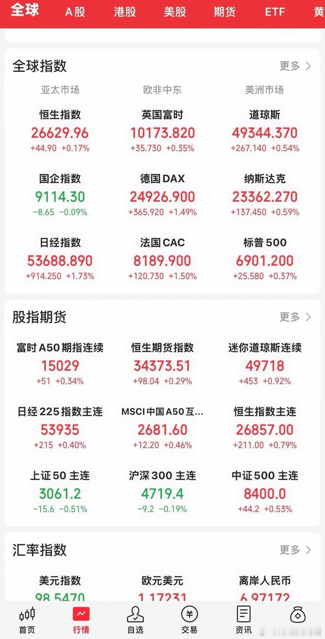 今晚开盘,美股三大指数全线上涨,个股涨多跌少,道指距历史新高仅一步之差了。标普500指数涨0.37%,道指涨0. 54%,纳指涨0. 59%。理想汽车涨超6%,阿里巴巴涨超6%。中概股指数高开高走,个股涨多跌少。富时A50高开高走。明天开盘的大A应该相对稳定,不会出现大涨,板块及个股转换很快,但最终收小阳结束本周的行情。