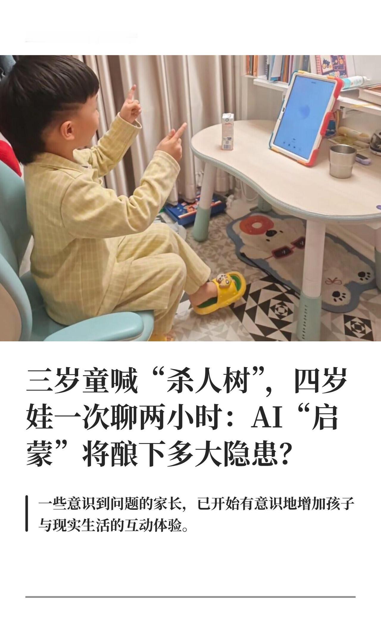 现在的小孩,差不多是跟AI一起长大的。智能音箱、聊天机器人成了家里常见的“伙伴”,有啥问题随口一问,它就能答,像个不知疲倦的百科全书。 但这玩意儿用多了,问题也慢慢出来了。北京一位妈妈就遇到过:她5岁的儿子突然问智能音箱“哪些奥特曼被打死过”,结果音箱平平静静地开始描述“被冰冻大卸八块”“砍头”这些血腥细节,吓得她赶紧打断。在成都,还有个4岁小女孩迷上了和AI聊天,一次能聊将近俩小时。 很多家长现在就处在一种挺矛盾的心态里:不用吧,怕孩子跟不上时代;用多了吧,又担心孩子懒得自己动脑子,或者接触到不该接触的信息。AI毕竟只是个工具,它不会像大人那样判断什么该说什么不该说,更不会教孩子怎么去理解、怎么去共情。 技术本身没什么不好,但怎么用它,尤其是在孩子身上,真的得留个心眼。这东西太容易让孩子产生依赖——反正啥都能问AI,自己还费劲想什么呢?可真正的思考能力、判断力,恰恰是在一次次“费劲”里长出来的。 说到底,AI可以是帮手,但不能变成孩子的“默认大脑”。该陪他看书、聊天的还是得陪,该让他自己琢磨的问题还是得让他琢磨。工具再聪明,也替不了人与人之间真实的互动和引导。不然,等孩子习惯了只和机器对话,可能失去的,恰恰是最宝贵的那部分——属于人的温度,和独立思考的能力。
