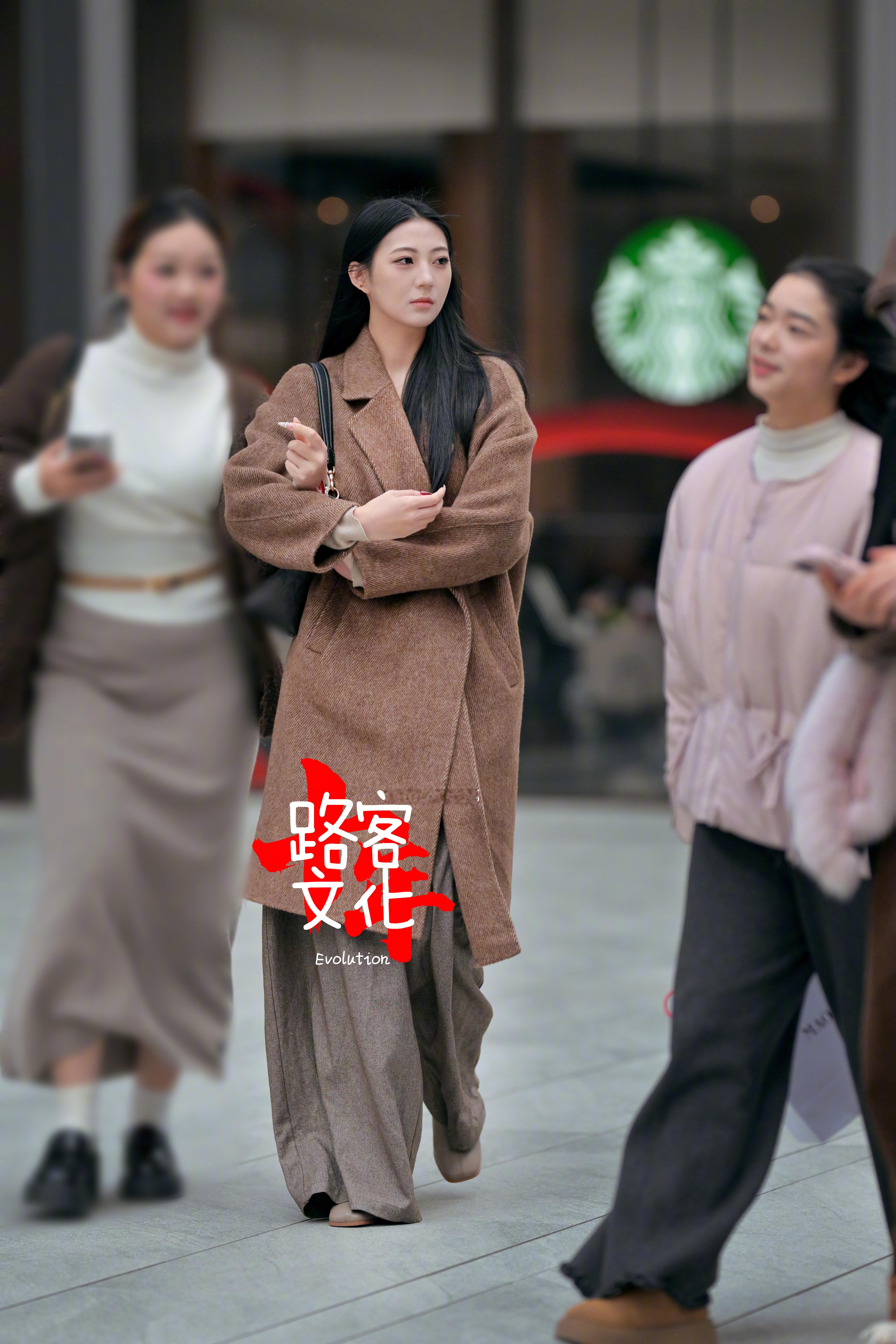 冬天逛街热饮是动力不过小姐姐这杯好像是冰饮!