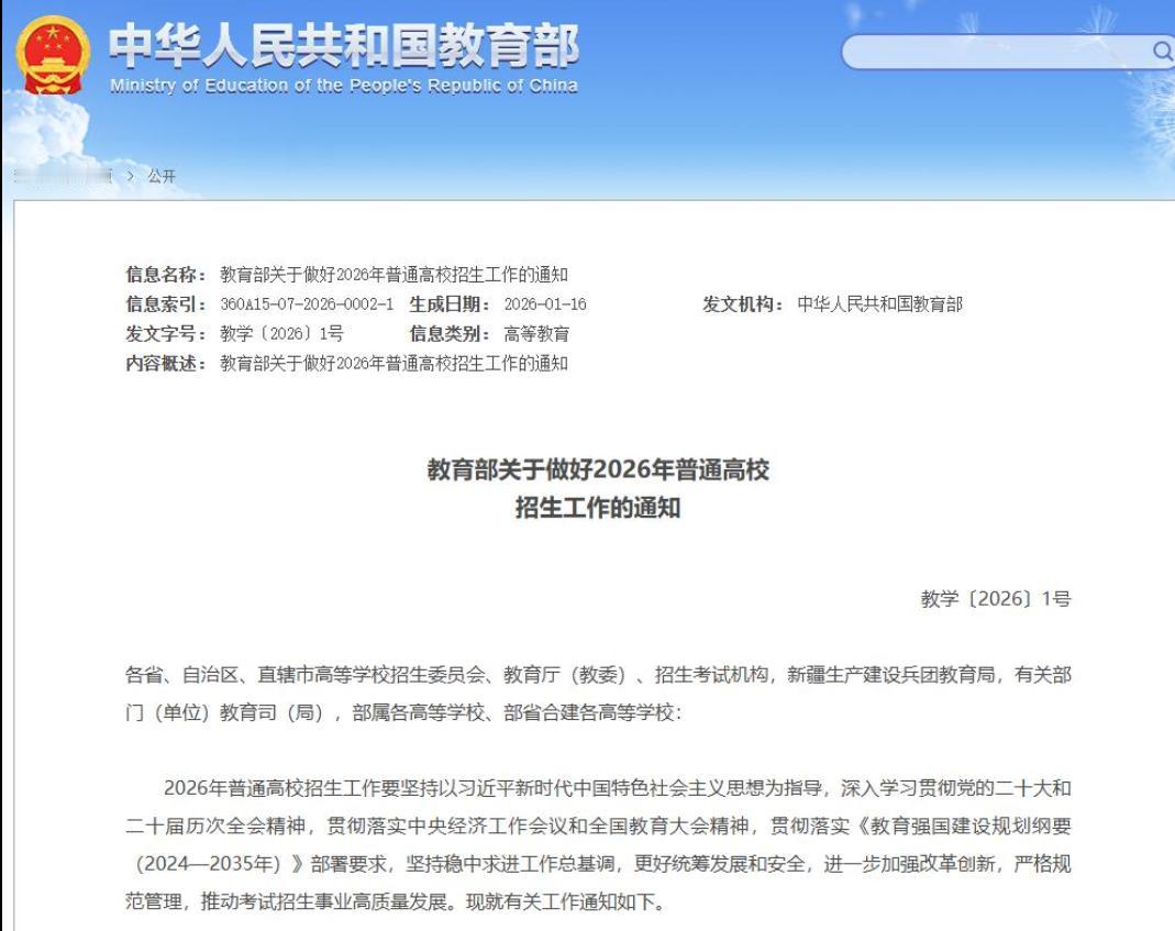 重磅!2026全国高考时间已确定 1月22日,教育部印发《关于做好2026年普通