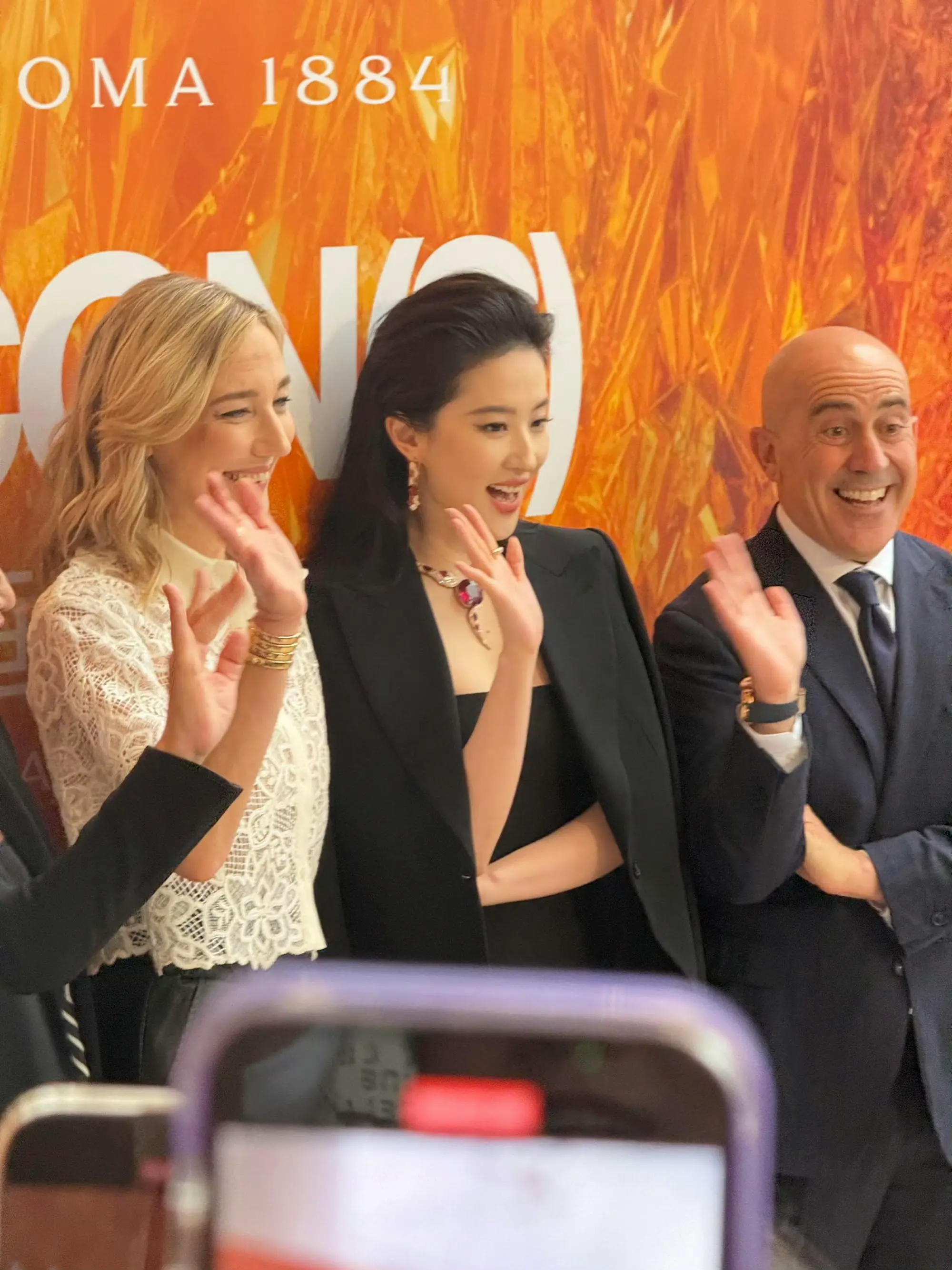 张天爱跟素人合影,胯真的好宽,大宅院似的