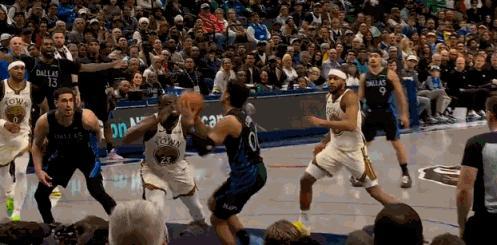追梦又“突发恶疾”了! 先是在防守端,没来由的肩膀发力,给了鲍威尔一下,裁判回