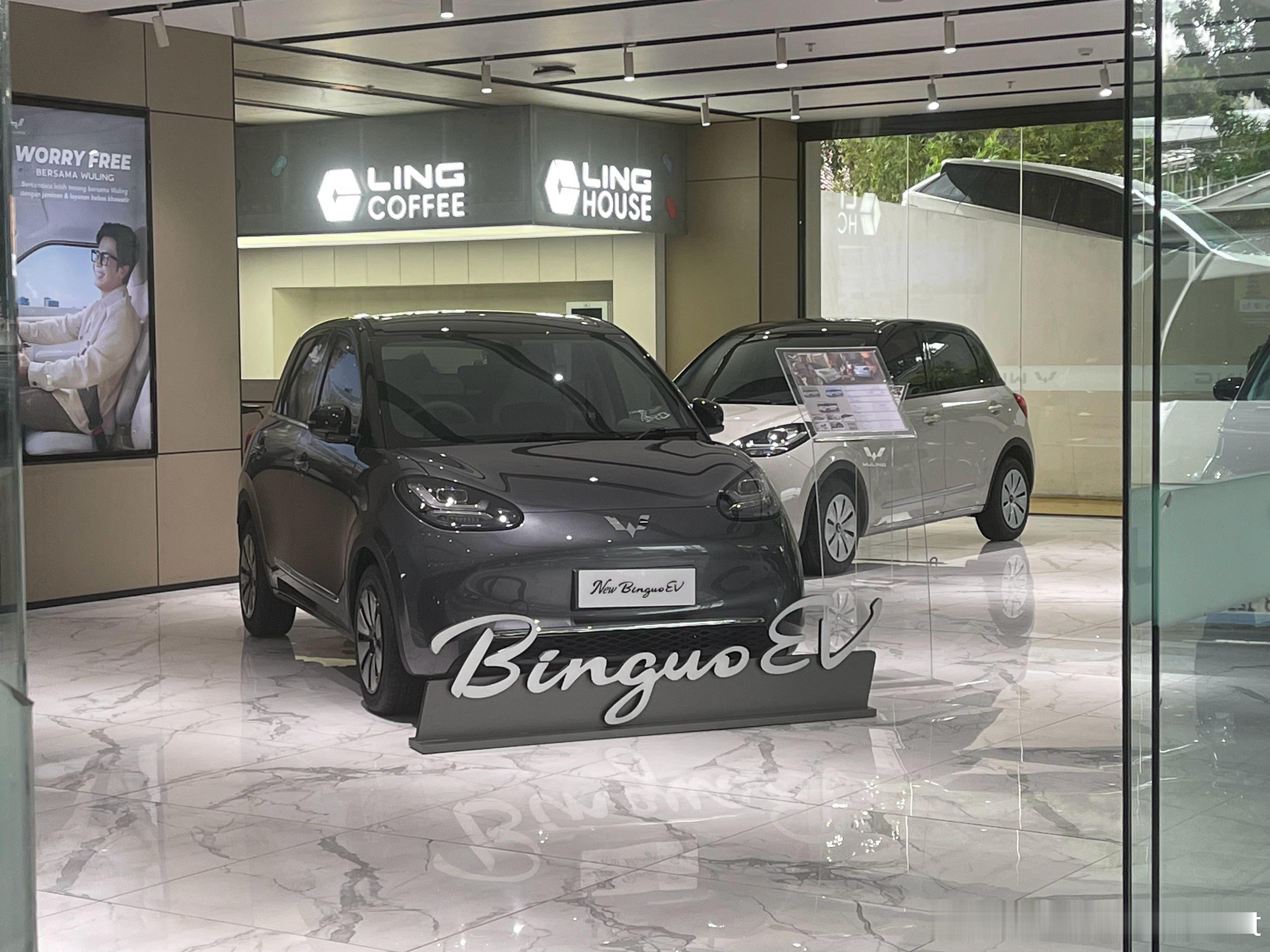 五菱在印尼的市场布局,车型真的很全,红、银标的产品都有。有缤果、Air EV、宏光、云朵,更没想到的是已经有在卖星光730了现在海外卖车也销售也同步直播了,这种玩法就是从国内传出去的。还有就是,五菱在印尼的4S店是真大印度尼西亚