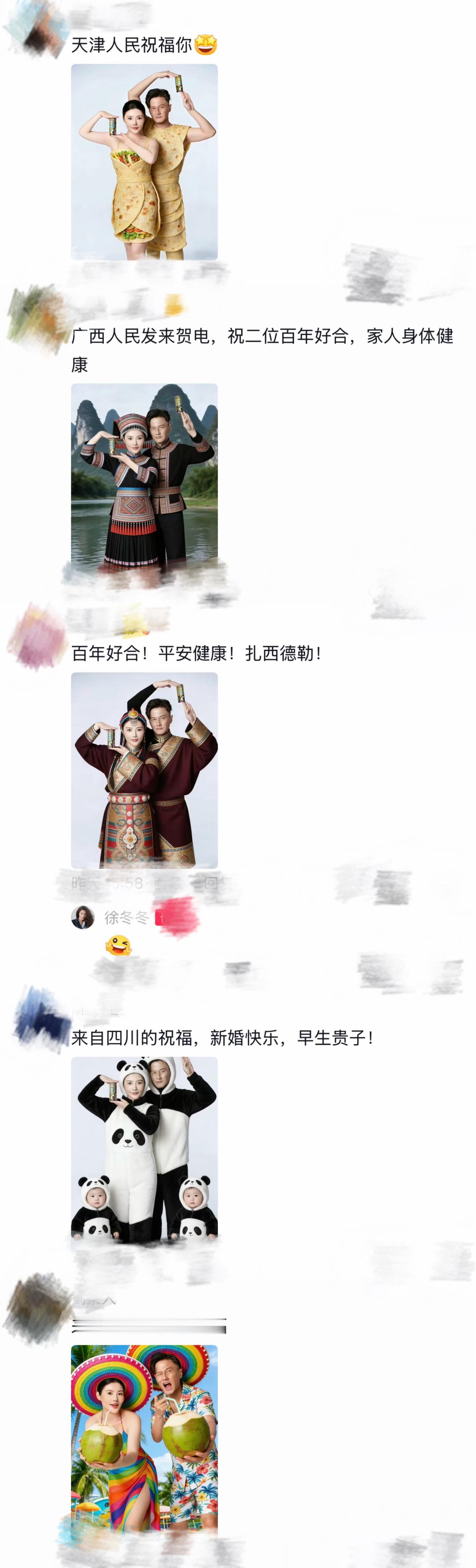 徐冬冬集齐全国ip祝福 徐冬冬集齐了全国ip祝福虽然徐冬冬和尹子维的婚礼不对外了,但是评论区都是来自各个地区的结婚祝福!!!新疆大馕、安徽省服、哈尔滨红肠、甘肃兰州拉面……云南、内蒙古、陕北的特色也一个不落,大家都在真心祝福他俩,看得我心里暖暖的2025微博之夜爆款创作大赛