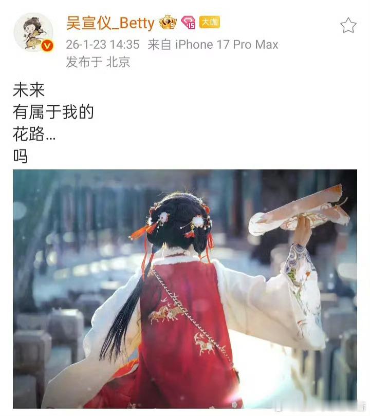 吴宣仪回应文案争议“别误会 自己修的图 感觉配上这种剧情文字才符合”“我的未来必