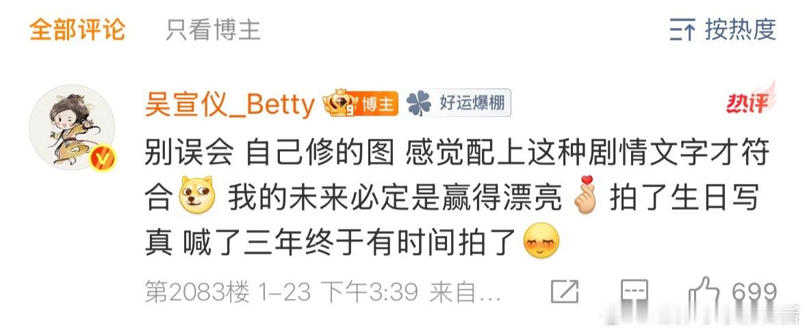 吴宣仪回应文案争议“别误会自己修的图感觉配上这种剧情文字才符合”“我的未来必