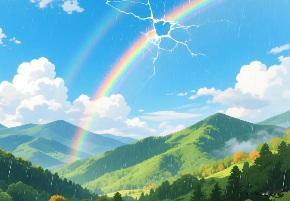 断虹霁雨,净秋空,山染修眉新绿。 ——宋·黄庭坚《念奴娇》 雨歇云散,天际横亘着断续的彩虹,秋日长空被涤荡得澄澈明净。远方山峦覆上新染的苍翠,恰似佳人精心描画的修长黛眉。 词句以清简笔墨绘出秋晴胜景,景中藏韵,后续感悟贴合词中意蕴,将自然之理与人生之悟相融,平实又有力量。 风雨过后方见彩虹,尘俗经洗才得清朗。 那些曾让人困顿的挫折磨难,如同一场骤雨,纵有一时寒凉,待雨过天晴,眼前便尽是澄澈与鲜亮。