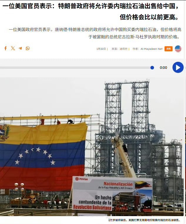 美国官员称,特朗普允许委内瑞拉继续向中国出售石油,但条件是必须提高价格。 热点观点