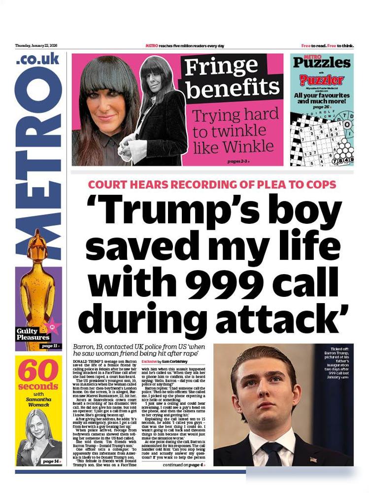 特朗普家的小儿子巴伦,这次真是给全美长脸了,人在美国坐,跨洋救了命。 当时他正跟伦敦的朋友视频聊天,原本温馨的连线画面,转头就变成了施暴直播。眼睁睁看着那姑娘被男友疯狂毒打,屏幕这头的巴伦直接切换到了“英雄模式”。 他没吓懵。一个长途求助电话直接打到了英国报警热线999。这种跨过大西洋的救人速度,比当地邻居反应还快,硬是把一场悲剧给按住了。 伦敦警察冲进门抓人的时候,估计那个渣男还在纳闷,到底是谁远隔万里报的警。直到英国法院开庭,把那段当年的报警录音当众播放,大伙儿才知道这个低调的年轻人到底有多冷静。 关键时刻不掉链子,这种临危不乱的执行力,确实比在大马路上显摆家产要有魅力得多。
