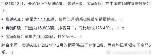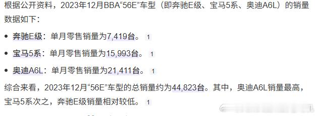 很有意思的是,我查了下BBA的56E连续三年12月的总销量都维持在4.4万台左右,但这个销量的维持实际上是依靠持续的降价来达成的。而享界S9 和享界S9T 的这个88150台的销量,是建立在主销款版本价格比奥迪A6高10%以上、比宝马5系高近10%的前提下达成的,而且这个价格差还只是对比BBA明面上的零售指导价,可以说含金量是非常非常高了。新能源汽车鸿蒙智行