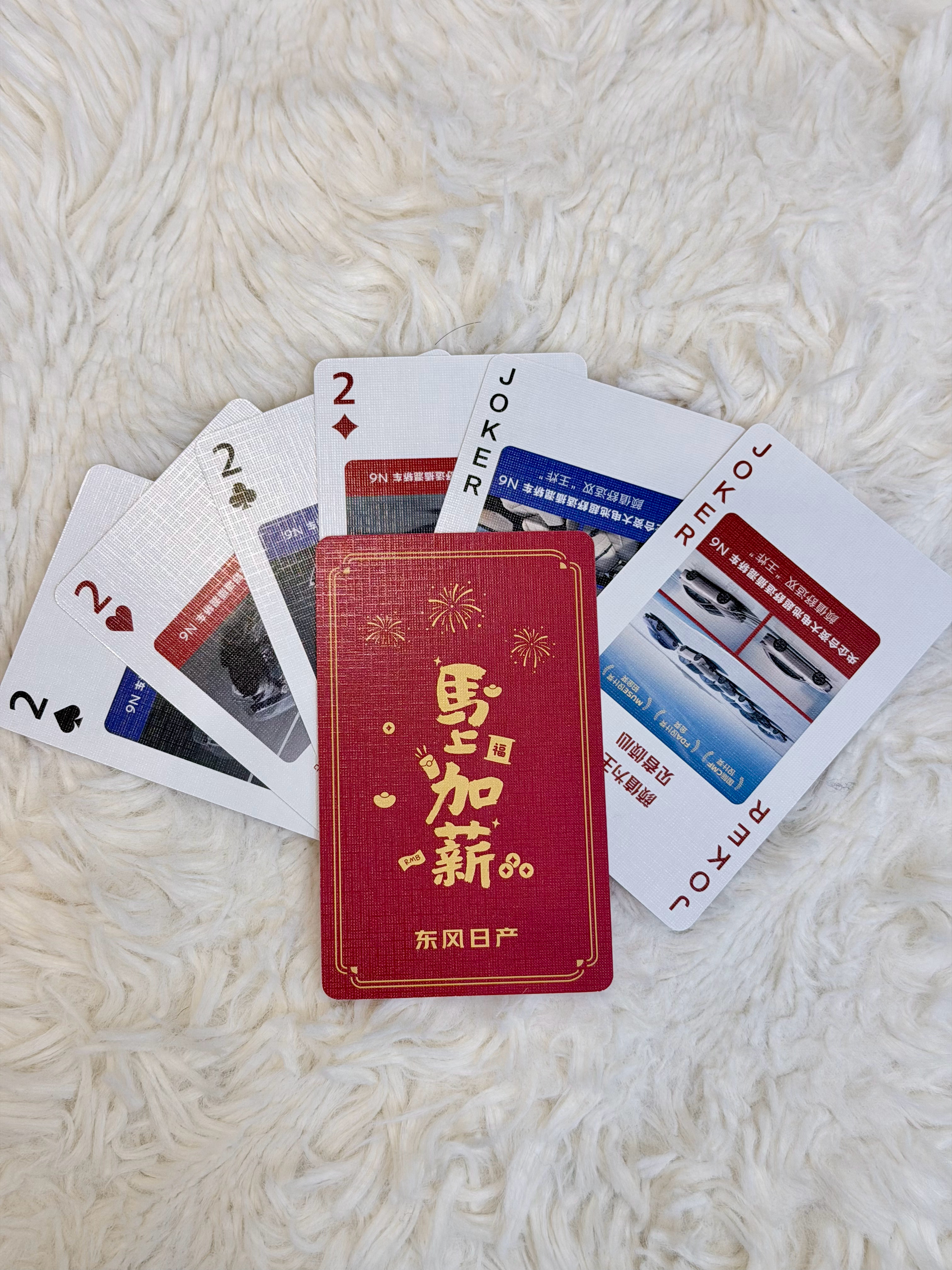 东风日产N6又有新周边,鸿运扑克牌重点是大小王四个2分别代表着日产N7和N6两款车的产品力想买纯电或者插混轿车的,都可以看看