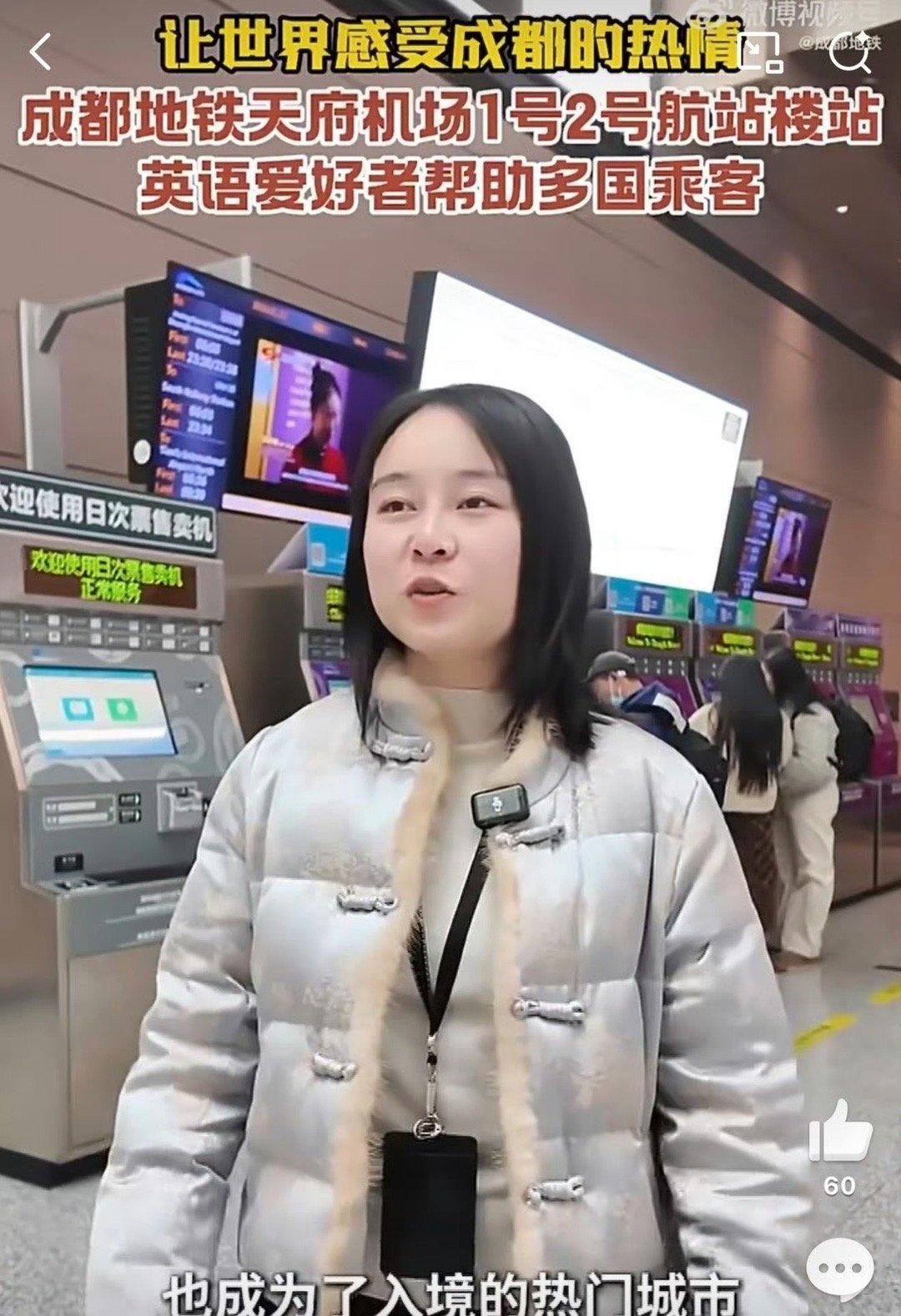 成都地铁惊现野生英语志愿者成都地铁天府机场站迎来一群暖心的野生英语志愿者!他们自发为外籍游客指路、购票、规划行程,把地铁站变成实景英语角,在锻炼口语的同时传递城市温度,让外国友人感受到成都的包容与热情~