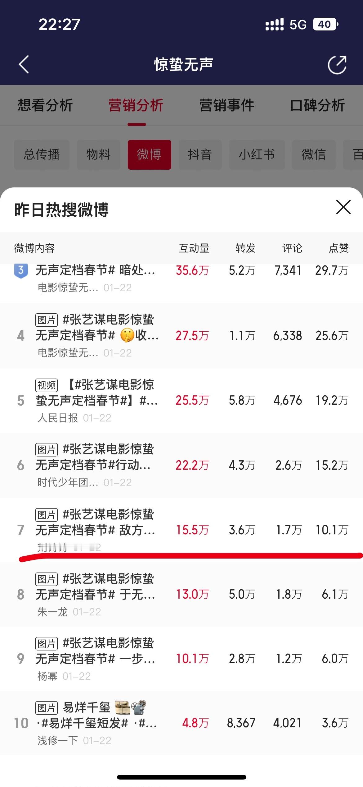 刘诗诗《惊蛰无声》相关微博互动量还挺高的,女星第一