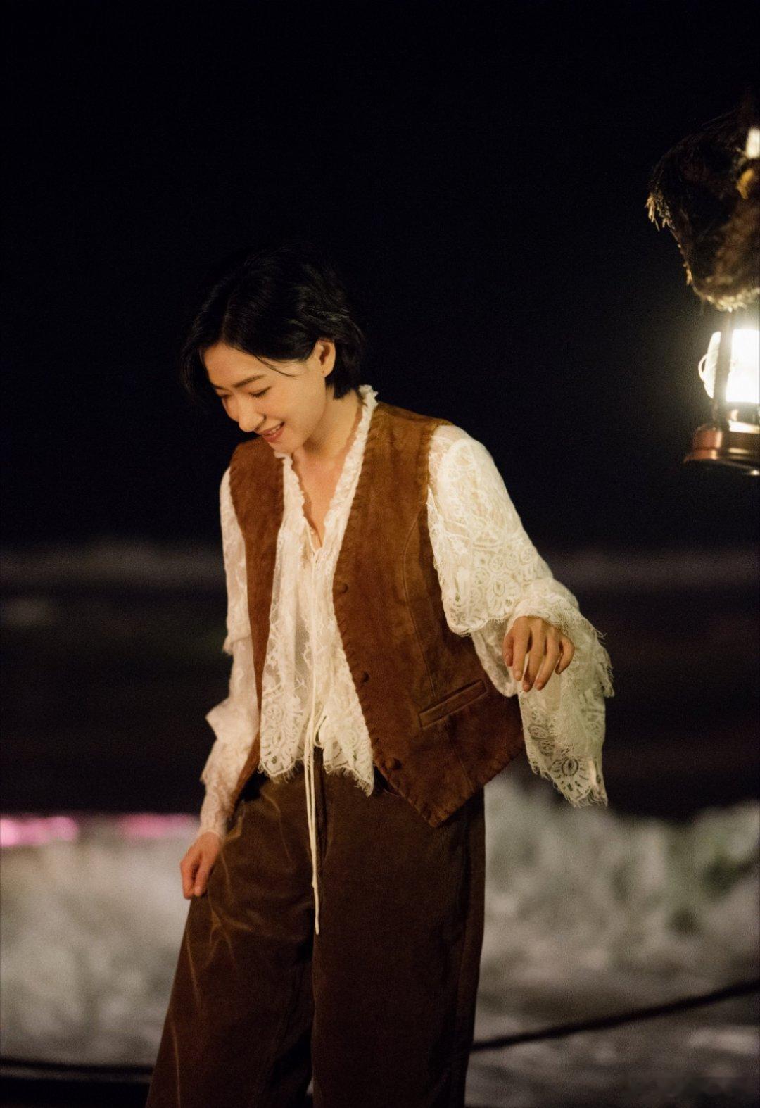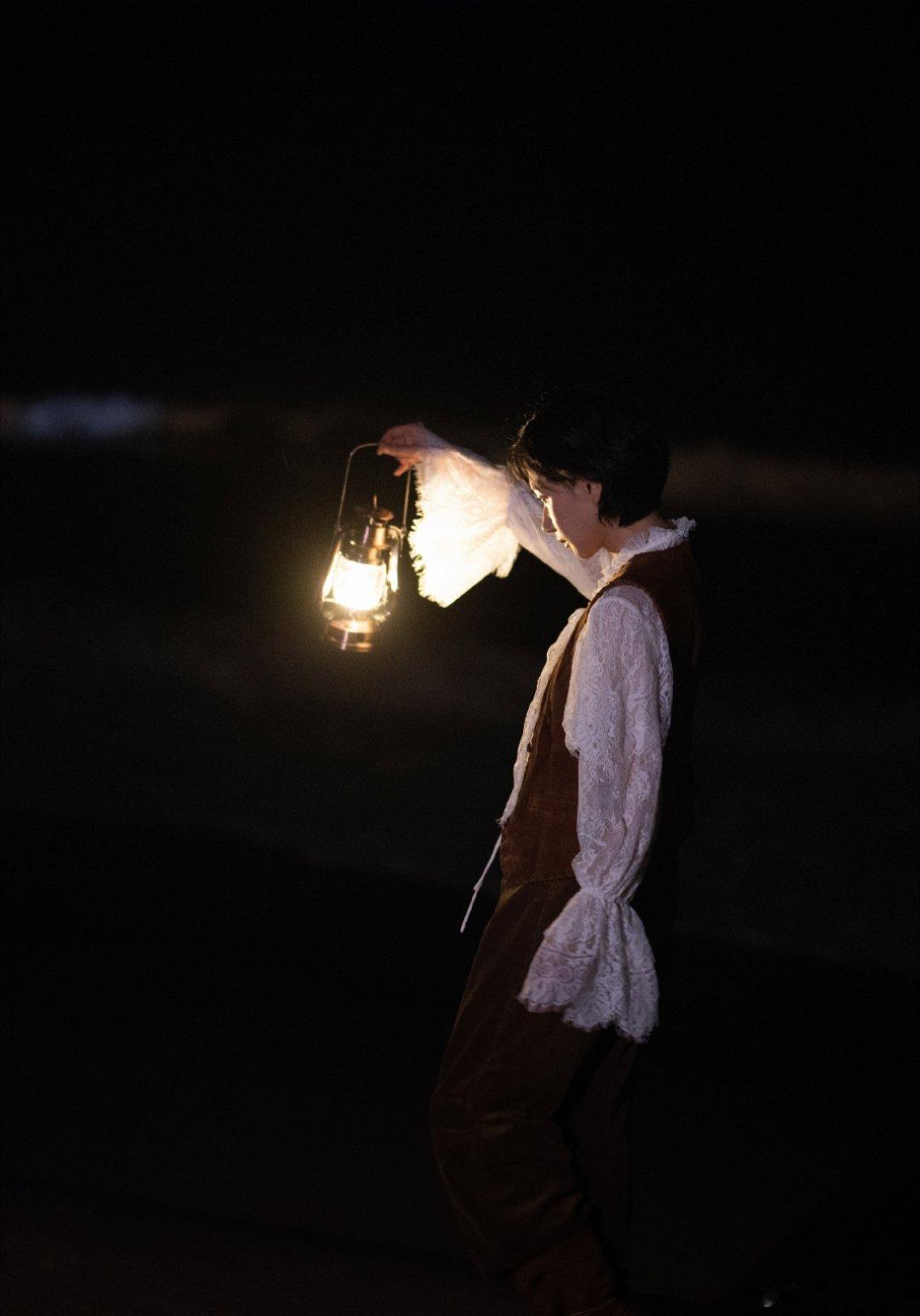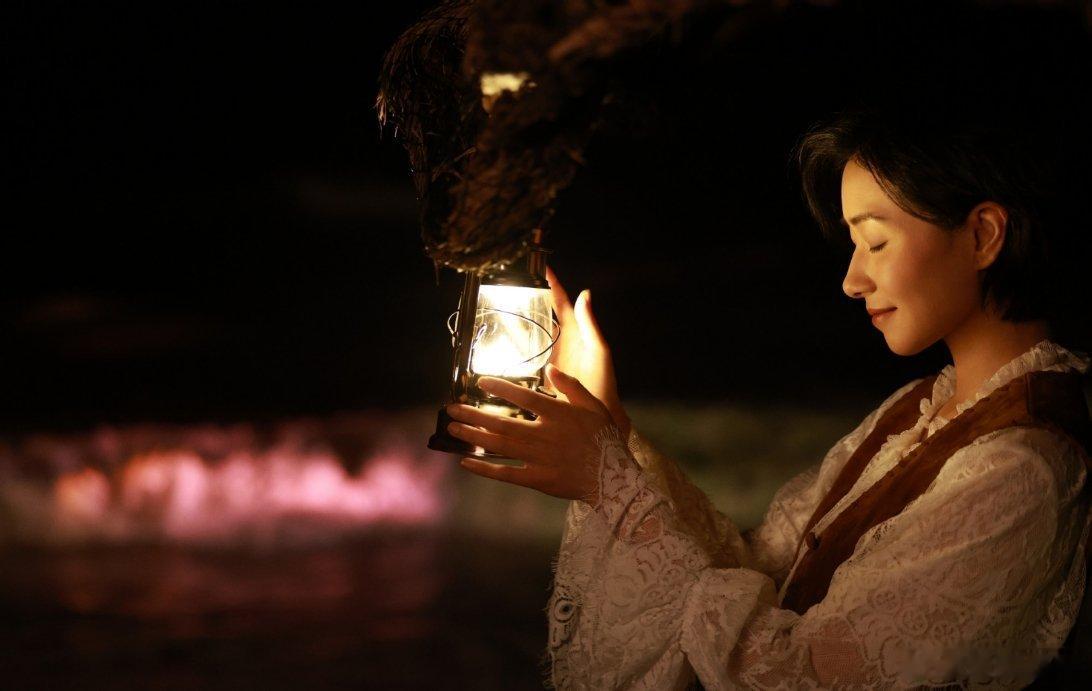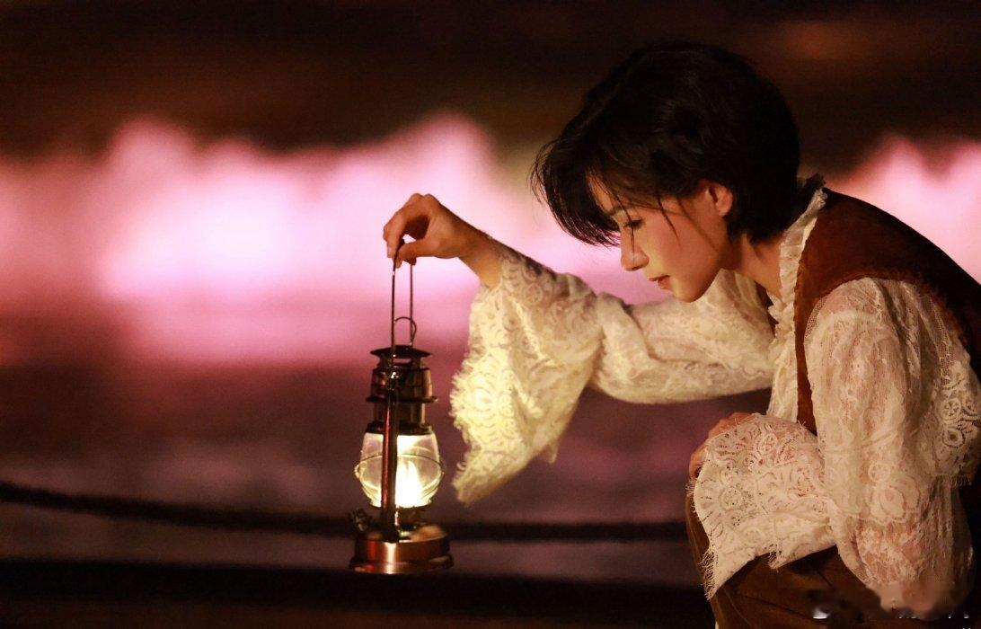万茜用一盏灯笼点亮海边夜色,复古造型在暖光与海浪间摇曳,一句“藏着第二个月亮”直