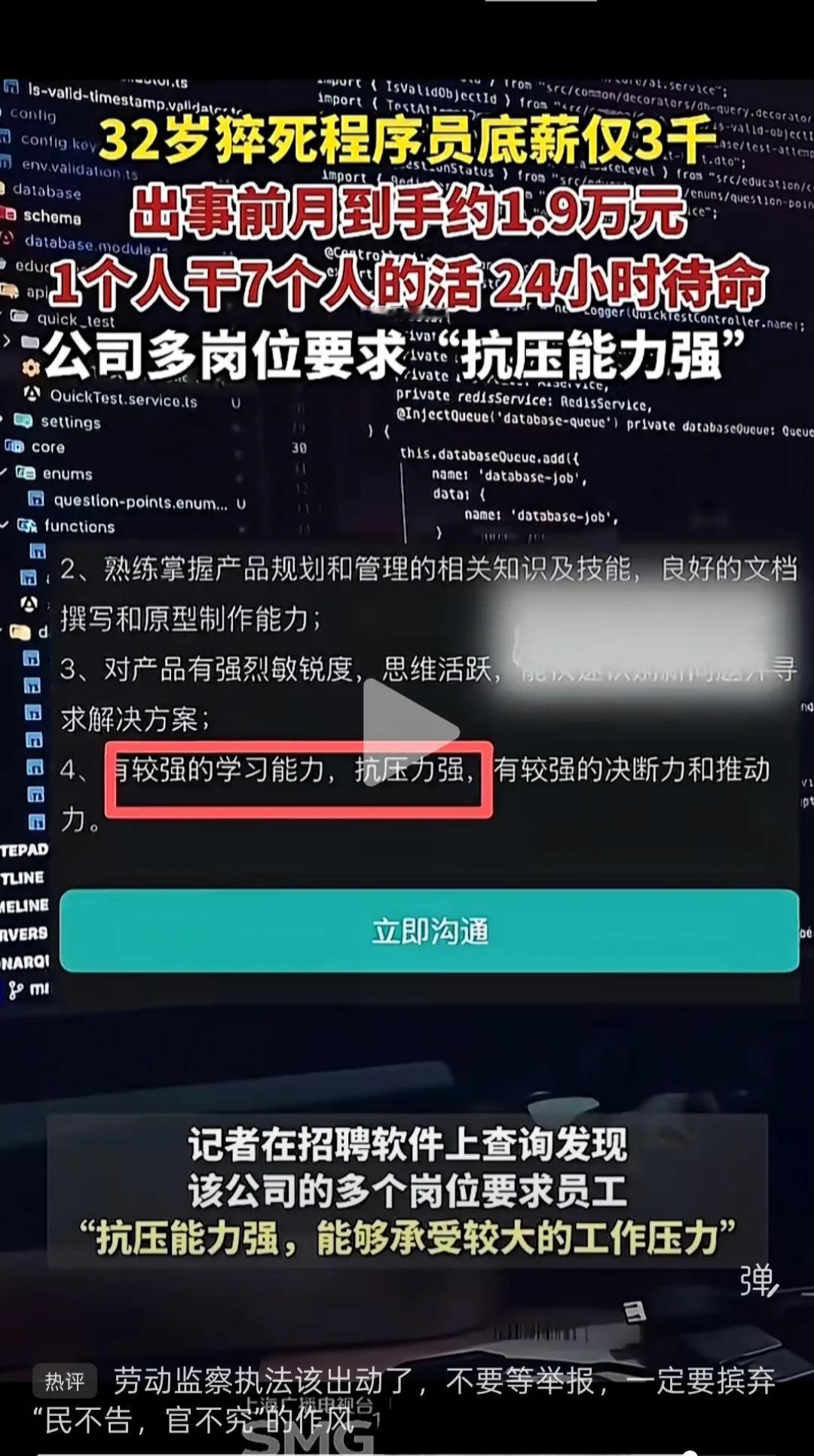 32岁程序员猝死事件:公司涉嫌违法,工伤认定与赔偿全解析 这起32岁广州程序员猝死事件里,公司的操作不仅不合规,甚至涉嫌违法,而死者是否算工伤、能赔多少钱,也有明确的法律依据。 一、公司行为涉嫌违法 从披露的信息看,这家公司的问题很明显: - 强制超时加班:“1个人干7个人的活、24小时待命”,严重违反《劳动法》中“每日加班不超过3小时、每月不超过36小时”的规定。 - 虚假薪酬结构:底薪仅3000元,靠高强度加班才拿到1.9万月薪,可能存在未足额支付加班费、变相压榨的情况。 - 岗位要求违规:招聘时将“抗压能力强”作为硬性要求,本质是变相强迫员工接受高强度工作,本身就不合规。 二、是否属于工伤? 根据《工伤保险条例》,在工作时间和工作岗位,突发疾病死亡或者在48小时之内经抢救无效死亡的,视同工伤。 这名程序员是在工位上猝死,符合“工作时间、工作岗位”的核心条件,因此依法应当认定为工伤。 三、工伤赔偿金额 如果认定为工伤,赔偿主要包括三部分: 1. 丧葬补助金:统筹地区上年度职工月平均工资×6个月。以广州2025年标准计算,约为 4.2万元。 2. 供养亲属抚恤金:按职工本人工资的一定比例,发给由因工死亡职工生前提供主要生活来源、无劳动能力的亲属。 3. 一次性工亡补助金:上一年度全国城镇居民人均可支配收入×20倍。以2025年标准计算,约为 126万元。 仅一次性工亡补助金和丧葬补助金两项,合计就接近 130万元。此外,若公司存在违法加班等过错,家属还可主张额外的民事赔偿。 这起事件也给所有打工人敲响警钟:遇到强制加班、薪酬违规等情况,要及时留存证据,必要时向劳动监察部门投诉,别拿健康换工资。