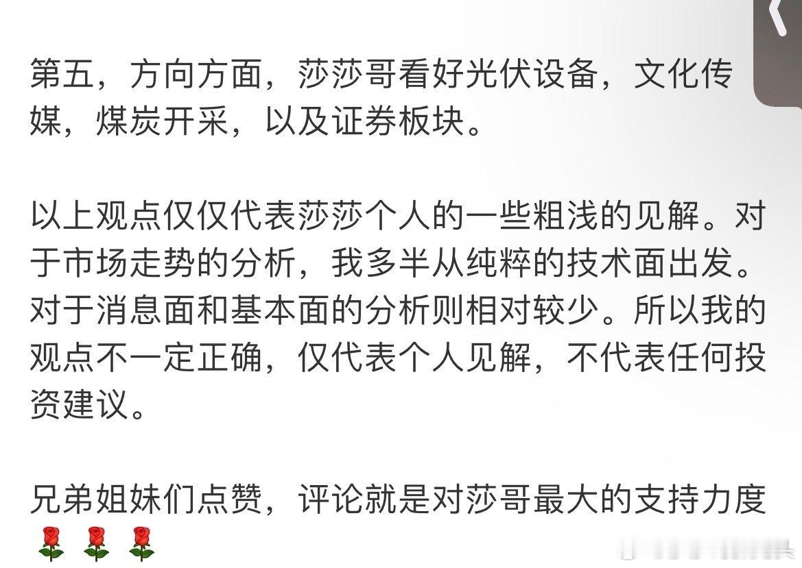 收评: A股盘中4次分时过山车,但2大特征,下周走势已经浮现从今天市场收盘的情况来看,最终市场还是走出了小幅度上涨的走势,与我预判的走势基本上还是相差不大的,大家请看图一莎莎昨天晚上更新的手绘预测图。今天市场的走势,比我预期中的走势稍微的幅度小了一些,但是整体来看,这个判断是没有问题的。昨天的这个手绘预测图我想打80分应该问题不大。其实今天盘中最有意思的是,上证50指数4次尝试将指数往下拉请看图二。尤其是尾盘最后半个小时,上证50指数的跌幅一度超过1%,上证指数快速翻绿。但是我们看到在尾盘的时候,上证指数再一次实现了v型反转 最终上证指数涨了0.33%。而这样的v型反转,全天一共上演了4次——今天主力压盘忙得不亦乐乎!但是大家发现了,今天市场最终还是同莎莎预判的一样,走出了上涨的行情而且整个走势也符合我上一周对于市场整体的预判。市场在本周走出了碟形结构。这种碟形结构是一种偏多头的结构,而且在碟形结构的右手边大家请看图三,往往会意味着新的主升波段产生。但是上去讲的都还不是重点,重点是今天市场的盘口特征,这才是我们需要更加注意的地方。今天盘口有两个特征,这两个特征甚至直接决定了下周一的走势:第一,今天市场的成交额比上一个交易日巨幅增量4000多亿。而今天上证指数的涨幅只有0.33%如此大的成交量。但是指数的涨幅却相对有限?这是一个什么信号?放量滞涨吗?答案恰恰相反,这是主力在进攻之前,大资金集结的信号,也就是说,今天市场的4000多亿的增量,我明确观点理解为,为下一周市场向上走五浪五小主升波段做准备。第二,上证50指数已经9连跌,连续跌9天的情况下,市场指数只出现了相对浅幅的调整。并且大家可以发现,今天市场盘中4次分时跳水,但是最终都能够被市场稳稳的承接起来。这从另外一个侧面也证明了市场当前有比较强的向上的意图。所以综合以上2点,莎莎基本上可以得出结论,对于下一周市场还是优先维持乐观的判断。本周的走势基本上在我的预判之中,我还是颇感欣慰的。尤其是今天市场涨幅最靠前的板块,光伏设备板块,我在今天早上的文章当中写出来了大家请看图四。作为一个纯技术派老手,还是比较靠谱的。这也是对那一些喜欢“怼我”的朋友的最好的回应。作为一个纯技术派老手,我相信我会继续稳定发挥的!因为只有这样才能真正对得起那些一直追随我的铁粉朋友们!与诸君共勉!收评就和大家收这么多,兄弟姐妹们点赞➕评论就是对我这个纯技术派的最大支持!