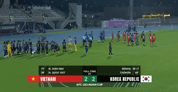 越南U23真的足够顽强,比赛86分钟就被罚下一人,但是硬生生的和韩国U23在加时赛打平进入点球大战,其实估计越南队少一人以后,多数人都会觉得越南U23加时赛惨了,但是他们就是抵挡住韩国队的进攻,双方进入了点球大战!