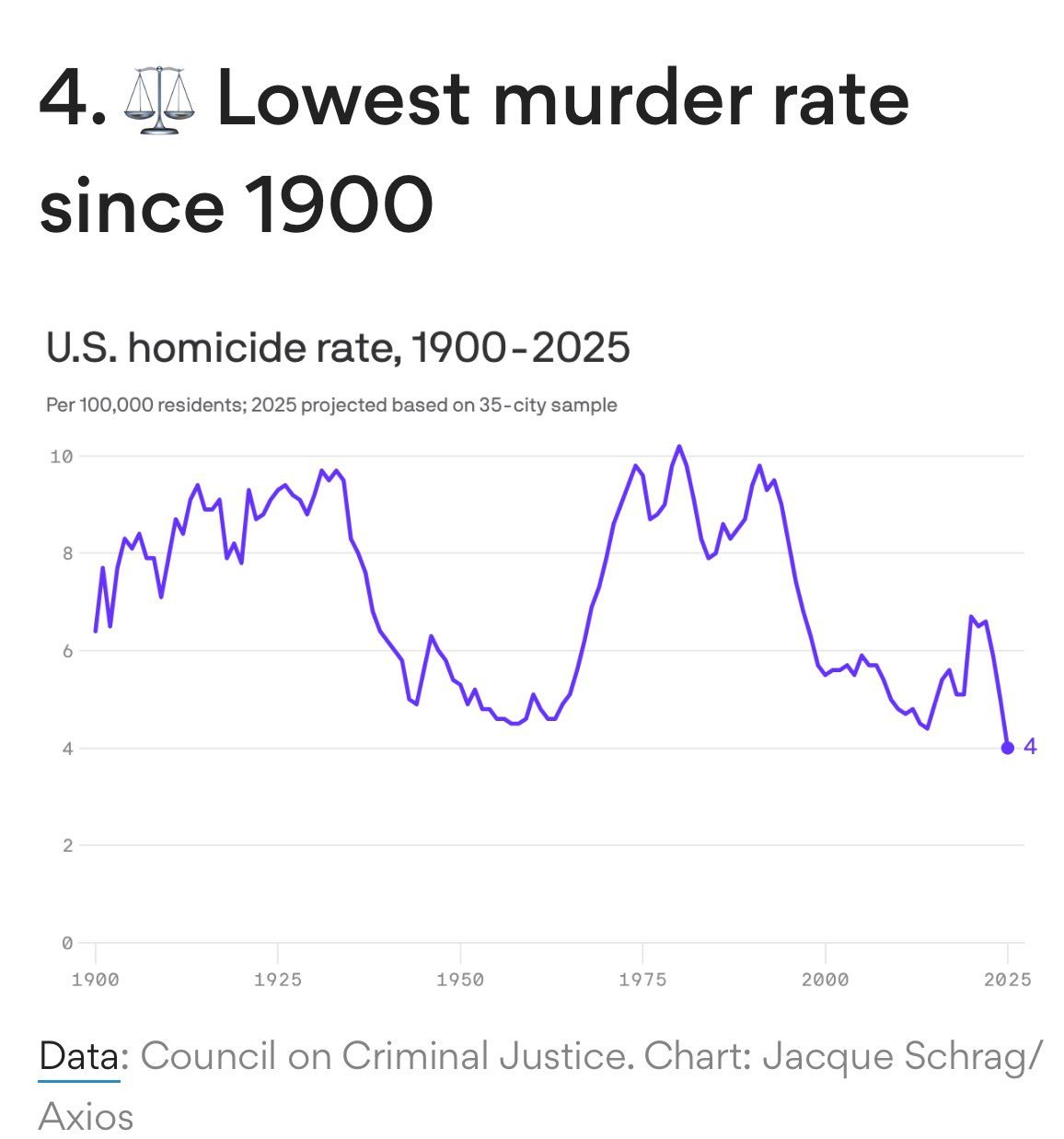特朗普对外投射军事力量,对内增加部署执法力量、加大刑罚。结果:¹ 2025年美国35个大城市的凶杀案大降21%!有史以来最大的单年降幅,而且很可能是自至少1900年以来最低的。”² 感觉他的安全政策在很多指标上确实是见效的。地方民主党作为竞争者也在加强刑罚,应该也是原因之一。比如旧金山市长罗伟。科学人医疗社会史