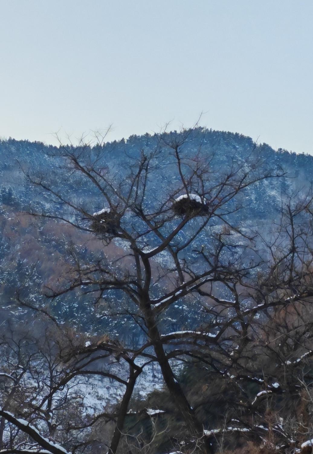雪窝窝 烟台的大雪过后想拍一张。雪景无意当中拍到一棵大树,上面有两个喜鹊窝。喜鹊窝上白雪覆盖。这叫雪窝窝吗?还是雪屋?