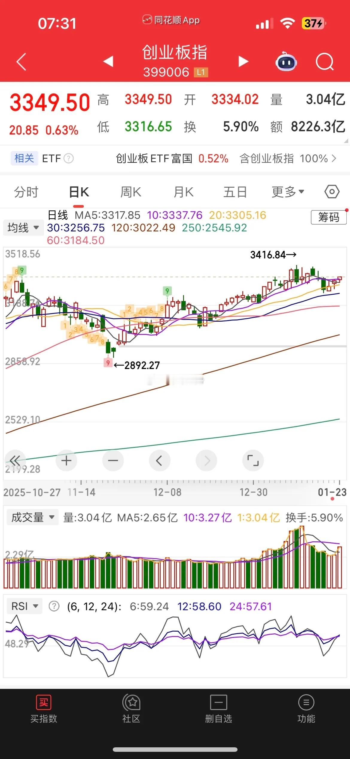 一觉醒来,见证历史了,贵金属继续狂飙,白银暴拉超6%,突破100美元大关,再创新高,强的可怕,而中概股普跌,纳指金龙指数跌0.26%,阿里大跌超2%,京东跌0.53%、百度跌0.66%,哔哩微跌,拼多多涨0.3%,小鹏大跌超3%,阿特斯太阳能大涨近5%,晶科能源大涨超9%,富时A50涨0.41%,恒生主连涨0.2%,这样看下周我们大A还会接着舞,继续往上攻,而港股恒科有望走出4连阳。昨晚美股三大指数涨跌不一,道指跌0.58%,纳指涨0.28%,连涨三天,大型科技股涨跌不一,费城半导体跌0.68%,英伟达涨1.53%,特斯拉微跌,AMD大涨超2%,台积电涨近2%,阿斯麦跌0.43%,博通跌近2%,美光科技涨0.52%,闪迪大跌超5%,西部数据跌近3%,脑再生科技涨超2%,英特尔重挫超17%,由于一季度营收指引不及预期。昨天市场震荡走强,沪指走出了三连阳,北证50更是大涨近4%,中证2000连着大涨3天,上证50连跌9天,可以说冰火两重天,而两市却放量超4000亿,目前总成交额超3.1万亿,说明市场做多动能充沛,不过赚钱效应主要还是集中在几个热门赛道,东边不亮西边亮,板块上昨天商业航天概念和太空光伏概念双双爆发,贵金属概念延续强势,Al应用表现活跃,权重CPO、保险板块惨遭重挫,午后半导体设备探底回升,整体来看目前市场依旧是结构性轮动行情为主,只要几个热门赛道不熄火,市场就还能接着舞,而想继续往上攻,还得需成交量的配合,不然谨防再度冲高回落。点赞就是对峰哥最大支持!黄景瑜上太空 王一博天塌了