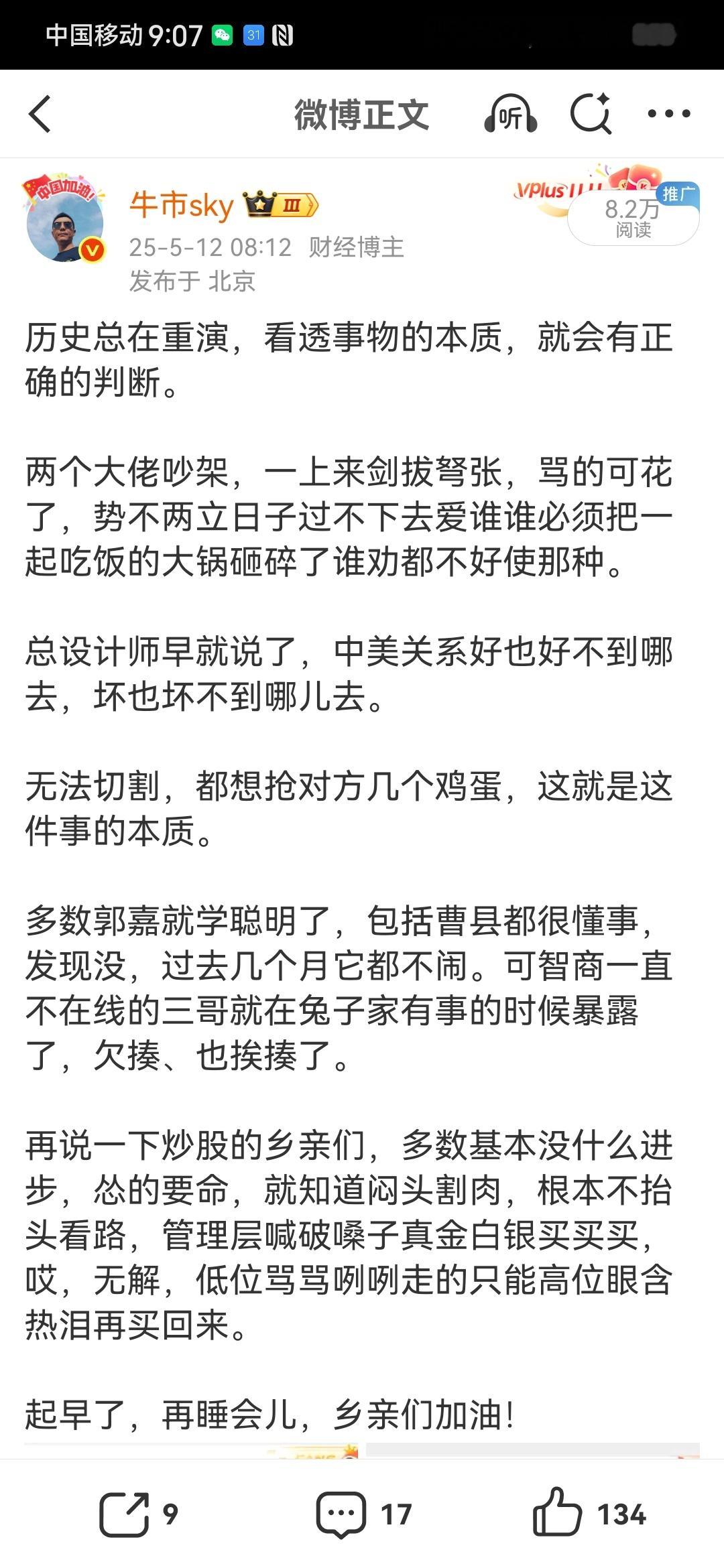 还记得去年四月份很多人说中美要切割翻脸吗?自己没有认知还吓唬自己,就和现在很多人骂券商一样,无脑!
