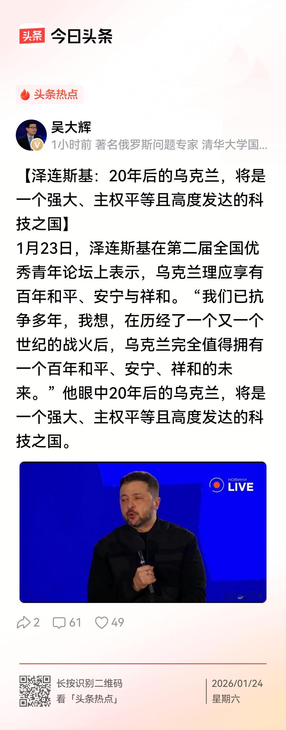 二十年后还有没有泽连斯基和乌克兰? 吴大辉老师发文,泽连斯基说,20年以