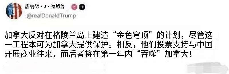 中国会在第一年内‘吞掉’加拿大! 特朗普又在威胁加拿大,因为加拿大选择了“与中国做生意”。而且,这种威胁说是中国将在一年之内吞并加拿大!详见图片。 在此之前,特朗普给加拿大总理卡尼发出消息,收回加拿大加入“和平委员会”的邀请函。 可以预见,这次威胁之后,特朗普还会对加拿大使出其他招数,毕竟此前他就说过,要让加拿大成为美国的第51个州。