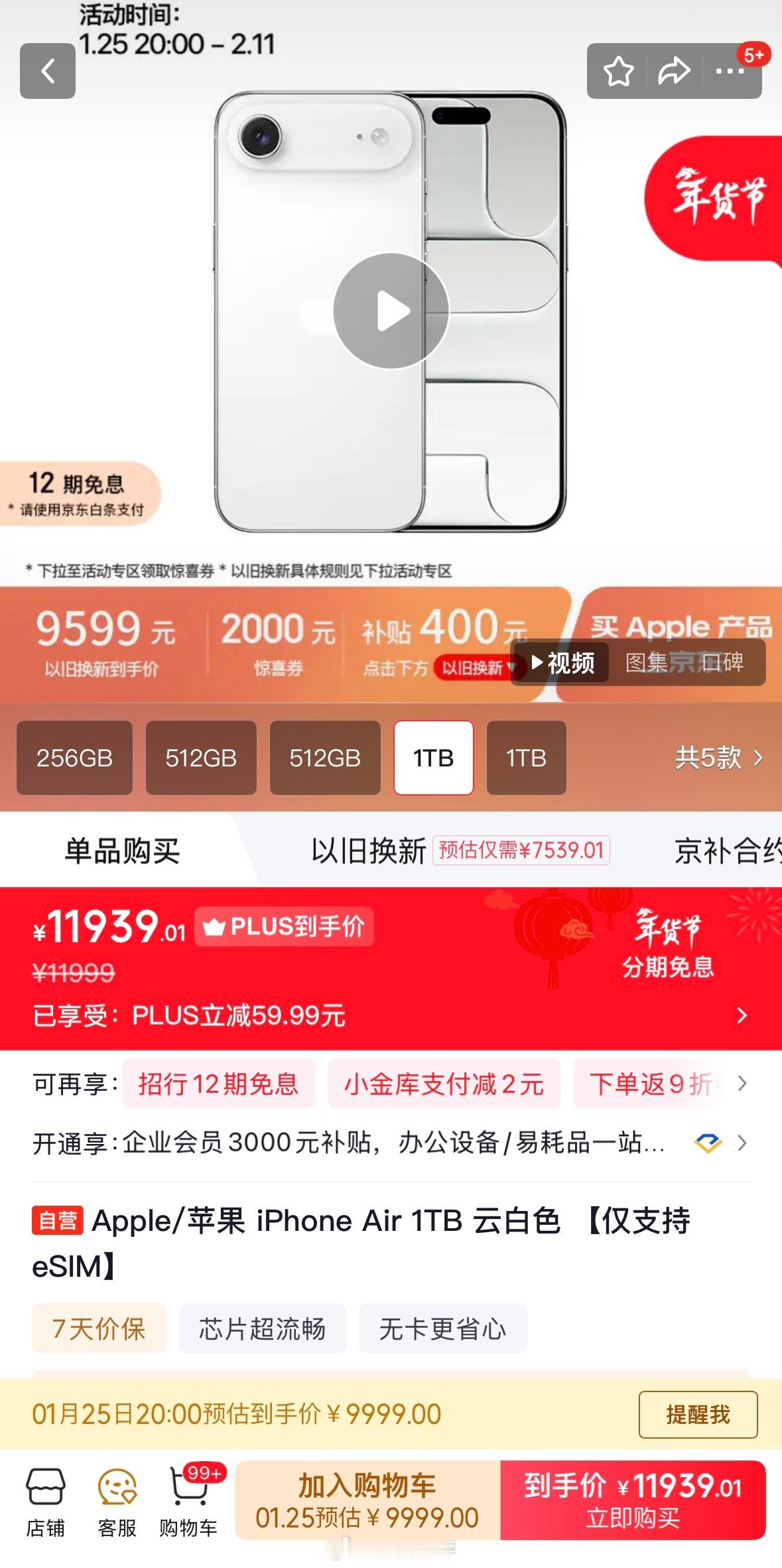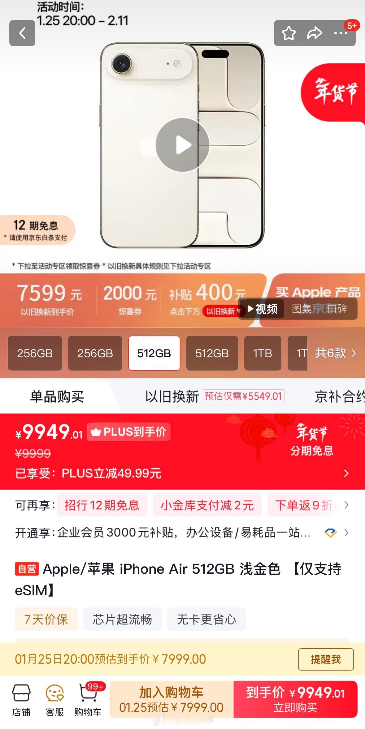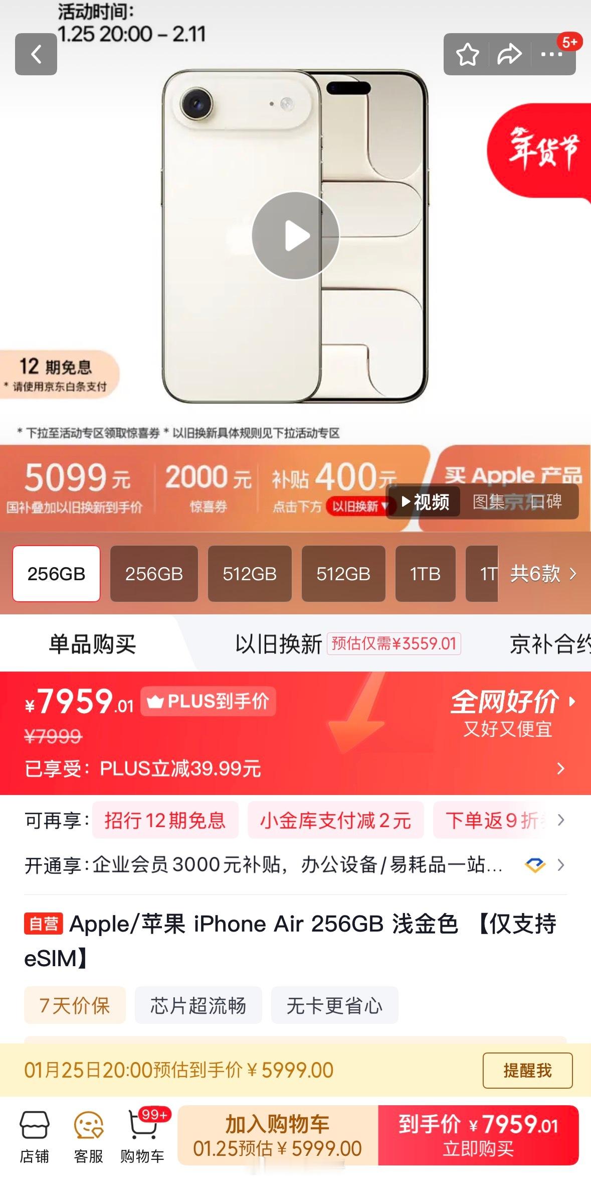 iPhoneAir直降2500块某东的年货节价格也出来了,iPhone Air同样降价2000块钱,另外参与以旧换新补贴400,有国补的话256GB版本再减500,最低可以比首发价优惠7999-5099=2900块钱。这波有打算入手的吗?
