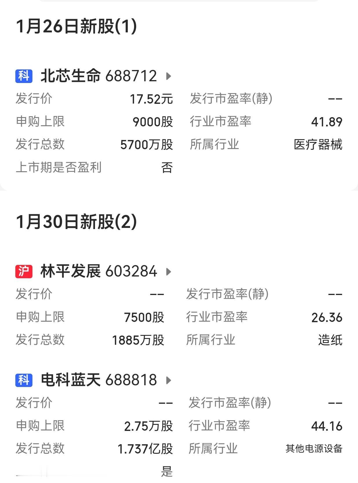 【下周A股市场有3只新股发行】 下周(2026年1月26日至30日)A股市场有3只新股发行。其中沪市主板各1只,科创板2只。 具体发行数据请阅读贴图。由于数据不全,还需注意当天相关公告。