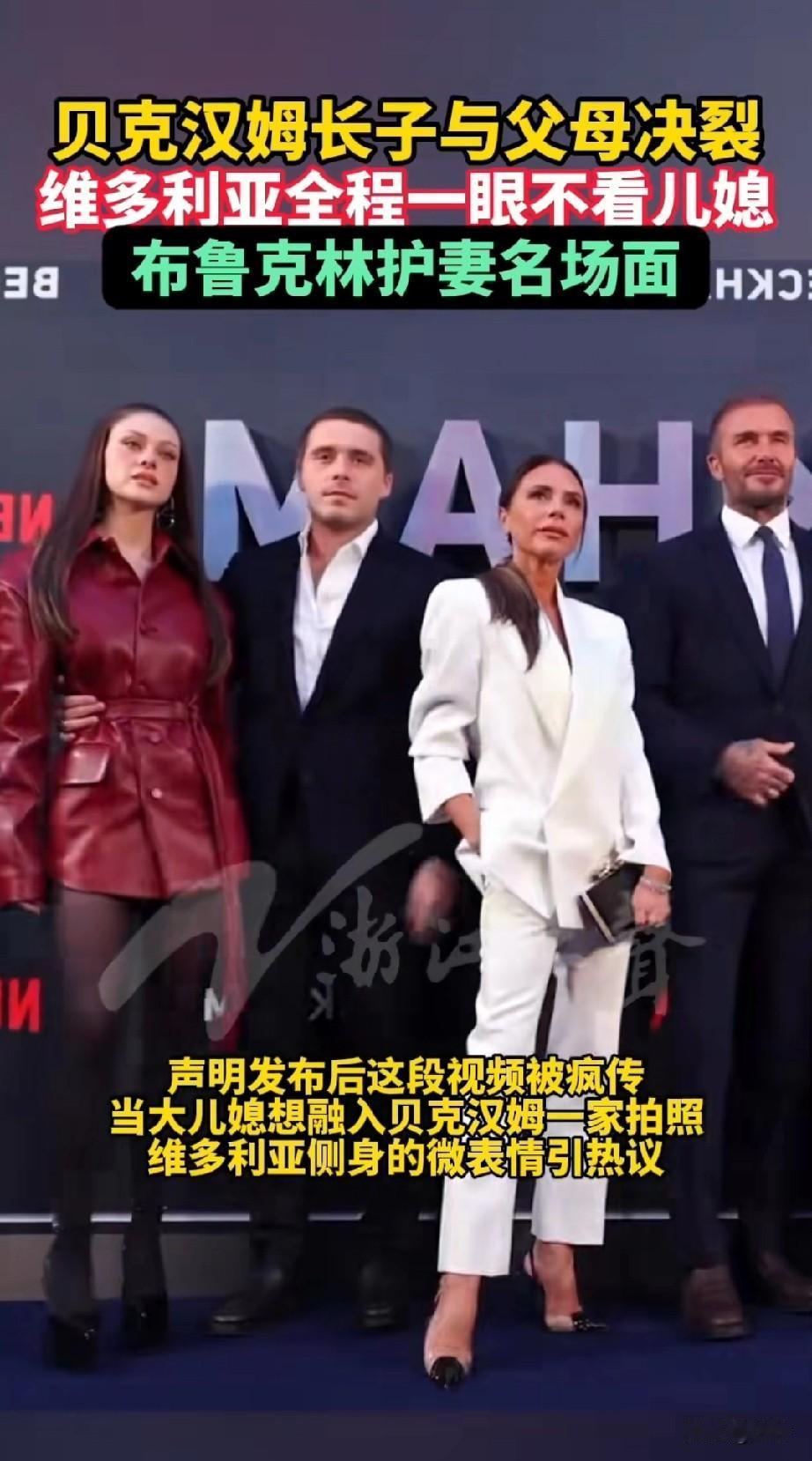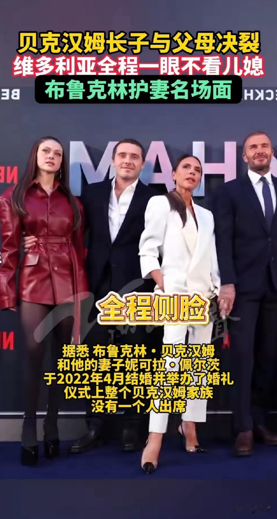 贝克汉姆的长子与贝克汉姆决裂,在一场公开活动中,贝克汉姆的媳妇儿,维多利亚始终不看了儿媳妇一眼! 从此可以看出她是多么的讨厌这个媳妇儿,但是贝克汉姆由于在公开场合,也没有去阻止这样的闹剧! 只有他的大儿子布鲁克林发现了这一现象,于是用手想要去拉自己的母亲,让她证明给一家人合影,结果他的母亲根本不买账! 还是全程侧脸?脸上没有任何笑容,贝克汉姆看到之后只能尴尬的笑了,声明发布之后,这段视频被疯传,维多利亚的微表情也吸引人们的议论! 大家都觉得儿媳妇儿想要融入他们一家,结果婆婆维多利亚压根不给机会!比起他的大儿子结婚的时候,贝克汉姆家族没有出席婚礼, 或许他们就是以这样的方式,反对儿子的婚姻,那个时候儿媳和婆婆的矛盾就已经埋下了火种!如今只是爆发了而已! 布鲁克林也指责自己的父母破坏他和妻子的感情!大家觉得维多利亚为什么看不上布鲁克林的媳妇儿?不妨聊一聊! 贝克汉姆 贝克汉姆家儿媳 贝克汉姆名场面 贝克汉姆妻女