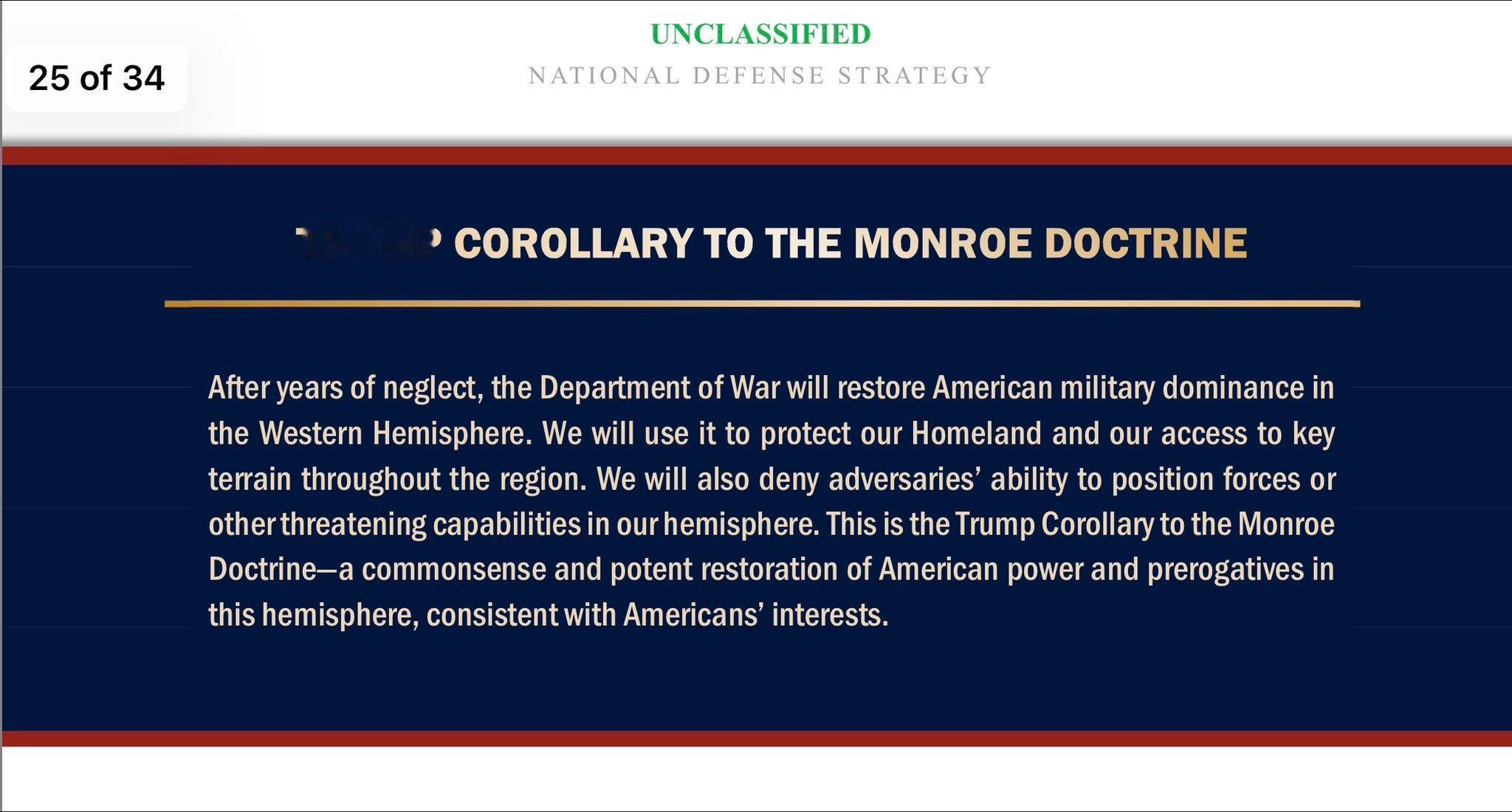 美国最新《国防战略》文件发布了!最核心四件事:¹ 保卫美国本土。² 通过力量而非对抗威慑印太地区的中国。³ 增加与盟友的分担负担。⁴ 将国防工业视为战略资产。¹ 整体语言非常明显少了意识形态色彩,交易化风格明显。比如说要在亚太实现“体面和平”(decent peace)。² 对科技政策研究者来说,国防工业日益战略资产化这条线值得追踪。³ 图3:特朗普2.0对“门罗主义” 的修正非常痴迷,这份文件单独列出。科学人医疗社会史