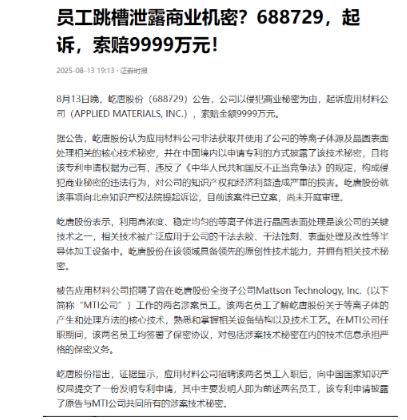 又出2名内鬼,损失巨大! 这就叫“日防夜防,家贼难防”。 在国产半导体被外部势力层层封锁、举步维艰的今天,最让人寒心的不是对手在技术上的硬碰硬,而是自己人从背后捅的这一刀。 就在大家拧成一股绳突破技术壁垒的时候,北京屹唐半导体发生的一件事,让整个行业都脊背发凉——俩核心研发人员,把公司辛辛苦苦攒下的“家底”连锅端,转手就送给了竞争对手,还是给美国的巨头递刀子。 这俩人可不是什么普通员工,是屹唐全资子公司MTI的技术骨干,手里攥着的是屹唐砸重金、耗数年才磨出来的宝贝技术。 当初屹唐为了搞到“等离子体源及晶圆表面处理技术”,直接花钱把美国MTI公司给收购了,整合双方团队没日没夜地优化打磨,就是想在半导体设备这个被国外垄断的领域,抢下一块属于咱们自己的阵地,这技术可是半导体制造里的关键环节,含金量高到能直接影响企业的市场竞争力。 结果这俩货倒好,离职前就憋着坏,把这项技术的核心参数、设备结构、工艺细节全摸透记牢,等于把屹唐的命门攥在了手里。 前脚从屹唐离职,后脚就钻进了美国应用材料公司的怀抱——那可是咱们国产半导体设备要直面竞争的巨头,全球离子注入机市场95%以上的份额都被他们这类企业垄断。 更恶心的是,俩人入职没多久,就把从屹唐偷来的技术换了个马甲,堂而皇之地以个人名义向中国知识产权局申请发明专利,想把别人多年的心血据为己有,这操作简直就是明火执仗的偷窃。 等到屹唐发现的时候,这俩人已经把技术秘密捅给了应用材料,人家说不定都开始消化吸收、转化成产品了。 屹唐没办法,只能硬着头皮维权,2025年8月直接把应用材料和这俩内鬼告上了北京知识产权法院,一开口就索赔9999万元。 可维权哪有那么容易?等离子体源技术属于高门槛涉密信息,就算能认定侵权,取证、鉴定都要耗上漫长时间,这期间技术秘密可能早就被美方公司用在生产上了,到时候就算赢了官司,损失也没法挽回。 要知道现在外部封锁这么严,EDA工具被禁、先进设备买不来,咱们每一点核心技术突破都来之不易,都是真金白银堆出来、研发人员熬出来的,就这么被俩内鬼轻松送给了竞争对手,等于给咱们的国产替代之路添了一堵墙,还帮着对手加固了垄断地位。 更让人窝火的是,屹唐这事儿还不是个例,最近几年国产半导体行业里,这种“跳槽式泄密”的破事屡见不鲜。 2025年宣判的尊湃通讯侵犯华为海思商业秘密案,跟这事儿如出一辙,一群原海思员工离职后成立公司,拉走14名老同事,故意让大家在离职前摘抄、截屏偷核心技术,最后研发的芯片里,40个核心技术点跟海思的商业秘密有90%以上的同一性。 虽说最后首犯被判了六年,罚了一千多万,可海思的技术损失、市场延误,这些看不见的代价根本没法用罚款弥补。 现在咱们半导体行业有多难?美国一边搞“精准延缓”策略,不让咱们在先进计算领域追上来,一边又搞“征税出口”的套路,卖个芯片还要抽15%的收益;日本在光刻胶、特气这些材料上卡脖子,咱们只能逼着自己加速替代。 多少企业在亏本研发,多少研发人员拿着不算顶尖的工资,日复一日地熬在实验室里,就想争口气,打破国外的技术垄断。 可偏偏就是有这种吃里扒外的内鬼,拿着企业给的资源、学着核心技术,转头就为了自己的利益,把整个行业的努力当筹码,卖给竞争对手。 对手的打压咱们能扛,技术的难关咱们能攻,可自己人的背叛最伤根基。这俩内鬼可能觉得自己只是跳个槽、换份工作,殊不知他们偷的不是一项技术,而是国产半导体突围的希望,是无数人咬牙坚持的底气。 应用材料拿到这项技术,只会进一步巩固垄断优势,反过来打压咱们的国产设备企业,到最后受伤的还是整个行业,甚至影响咱们的产业链安全。 尊湃案的重判已经给行业敲了警钟,可还是有人顶风作案。说到底,这种内鬼的存在,比外部的技术封锁更可怕,外部的敌人咱们看得见、防得住,可藏在身边的家贼,冷不丁就给你致命一击。 希望屹唐这起官司能从严判决,给所有半导体从业者提个醒,也让那些动歪心思的人知道,背叛行业、窃取技术,迟早要付出代价。 在这个内忧外患的节骨眼上,少些内鬼作祟,多些坚守担当,咱们的国产半导体才能真正走得稳、走得远。