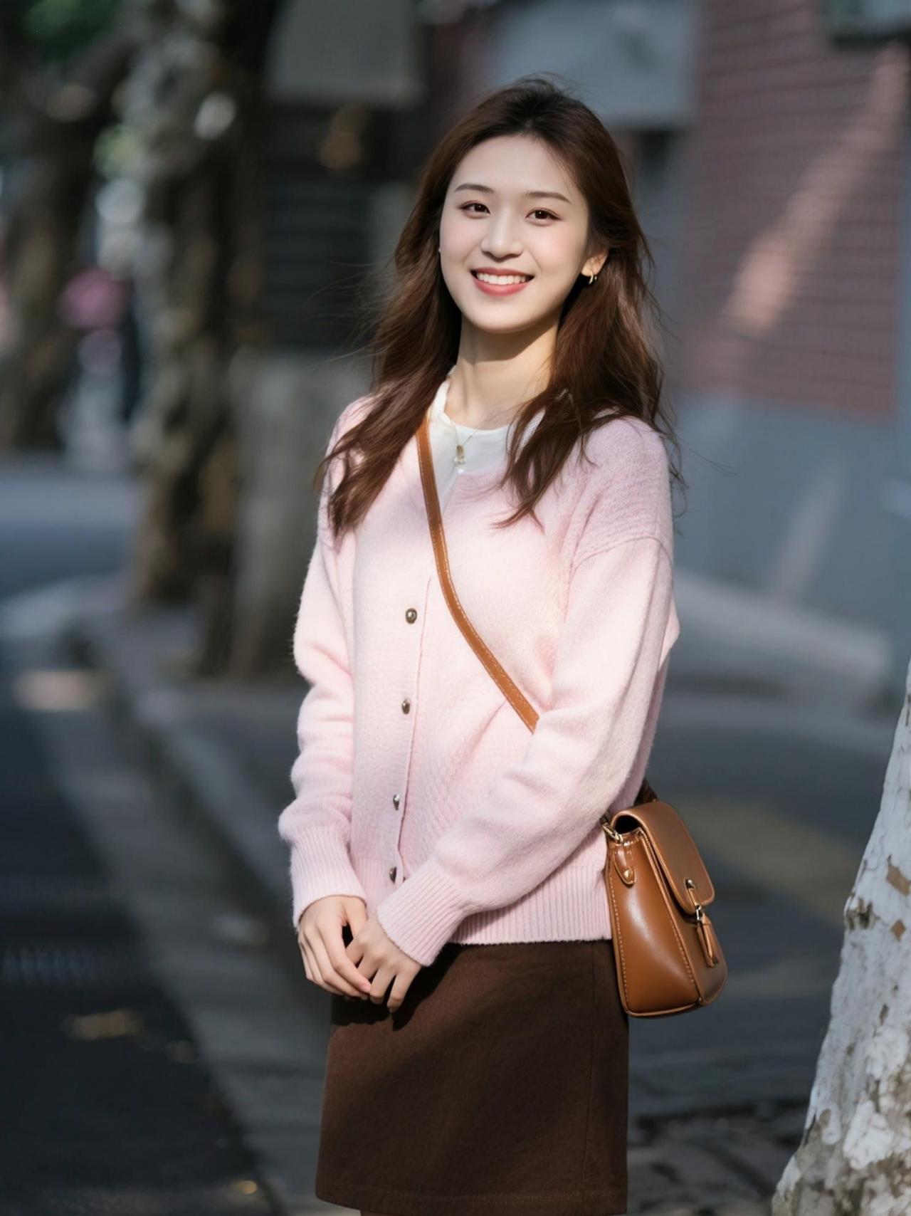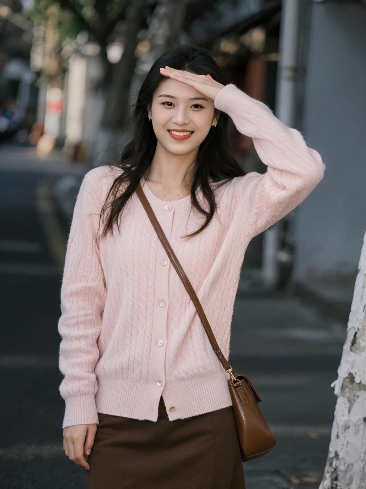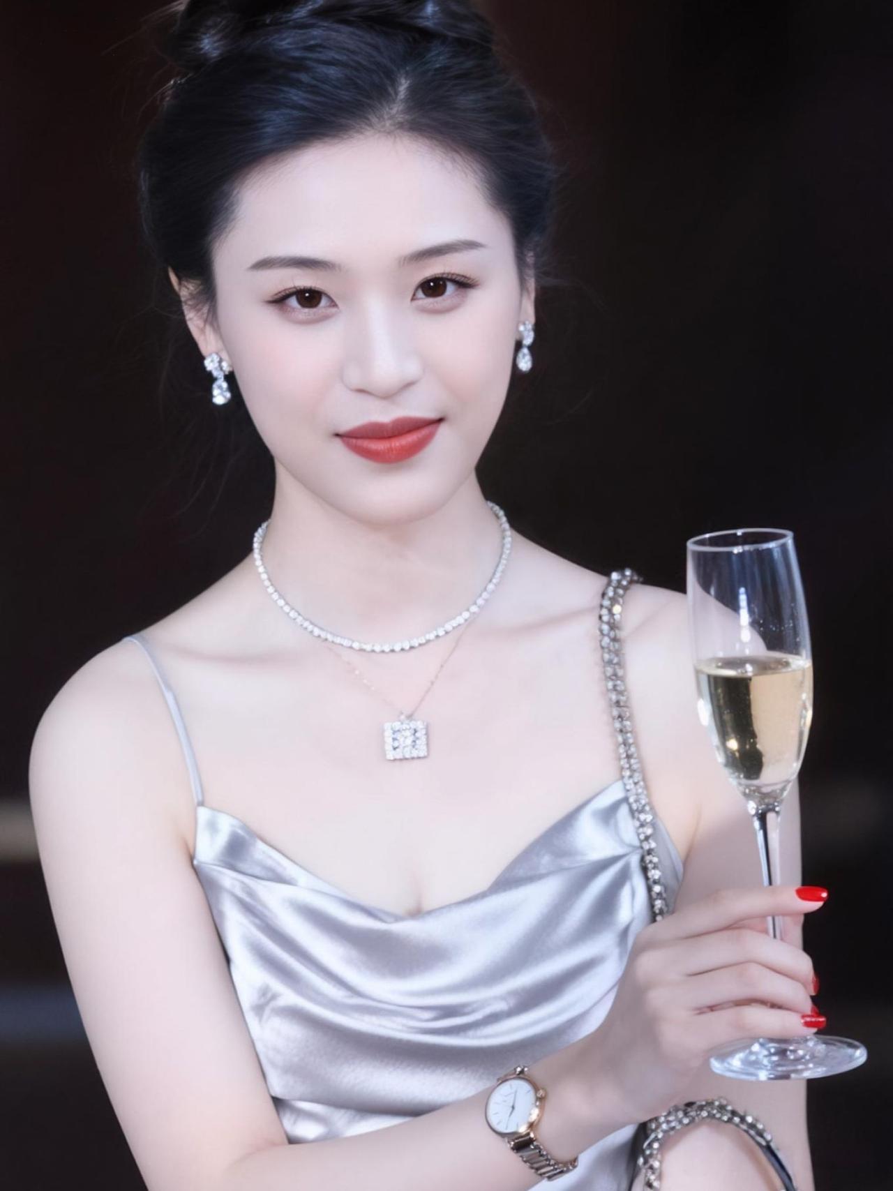 翠色围衣坐晚晴, 松风漫卷落英轻。 眉弯带露春山远, 笑靥凝脂晓日明。 一缕柔丝牵客思, 半林光影共心宁。 无端惹得林间鸟, 误认枝头雪未停。