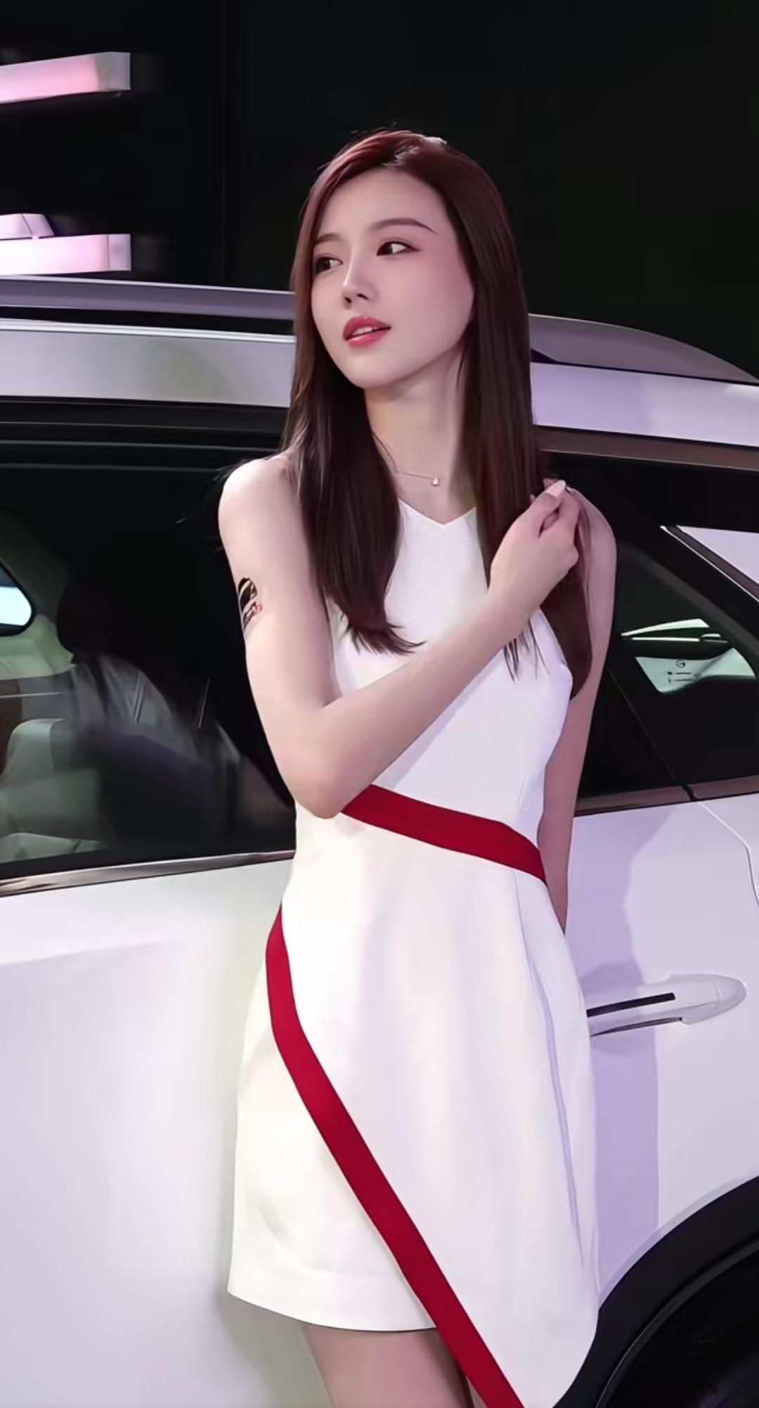 优雅白裙,红腰带,车旁美少女,时尚感爆棚!💃🏻👗🚗