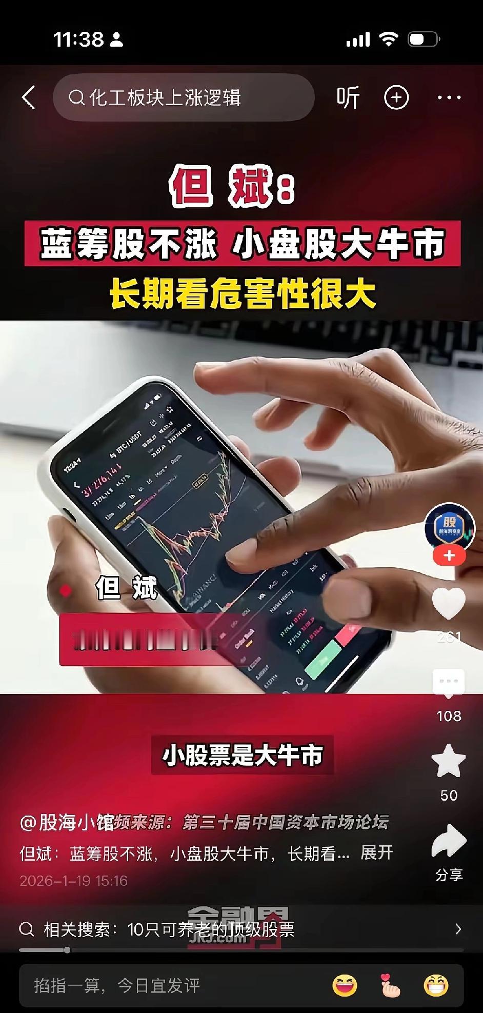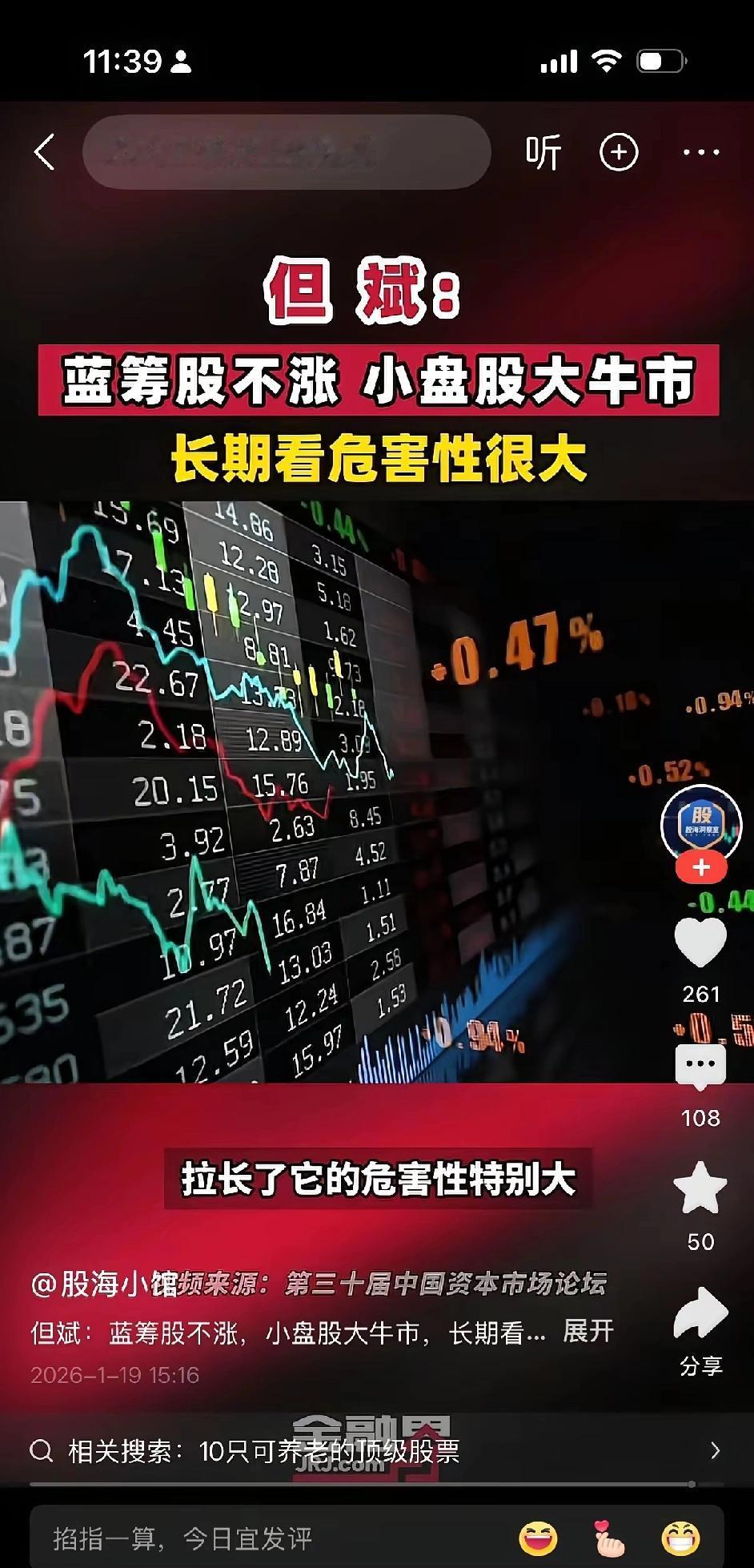 大佬但斌又出来说话了。 ​他说,大A蓝筹股不涨,小市值的股票是大牛市,这个问题很