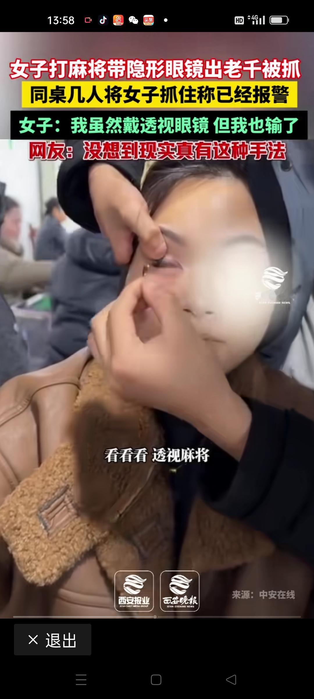 【女子戴透视隐形眼镜打麻将被牌友发现报警,结局令人深思】 这起看似荒诞的事件,