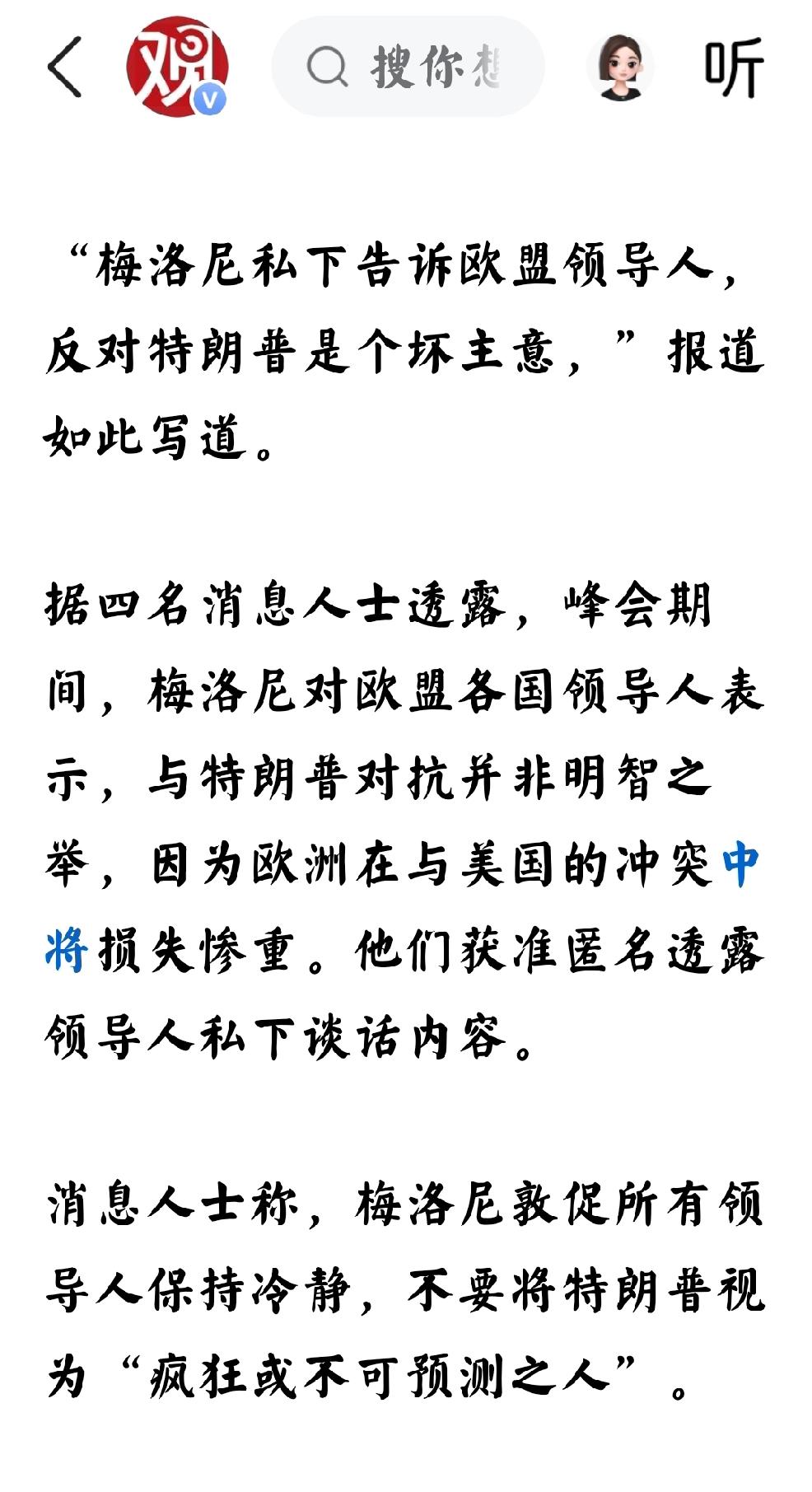 当地时间1月22日,欧盟27国领导人在布鲁塞尔举行闭门峰会,讨论如何应对美国,23日,美国政客新闻网欧洲版还眼消息称,会上,意大利总理梅洛尼为美国总统特朗普进行了辩护:“别和特朗普对抗,没好果子吃。” 个人认为:大伙平时都是伪装,只有在关键时刻才会表现出真性情。 这不在当下的时机,按理来说,欧盟应该抱团反抗美国,可是在此时机意大利又选择了与众不同的举手投降观点。 看来跪舔美国的东西方两国家代表已经出现,东方的日本,西方的意大利,而且这两个国家又手牵手的肩并肩的站在了一起。 跪舔是不能换来支持,只能换来越来越重的压迫。