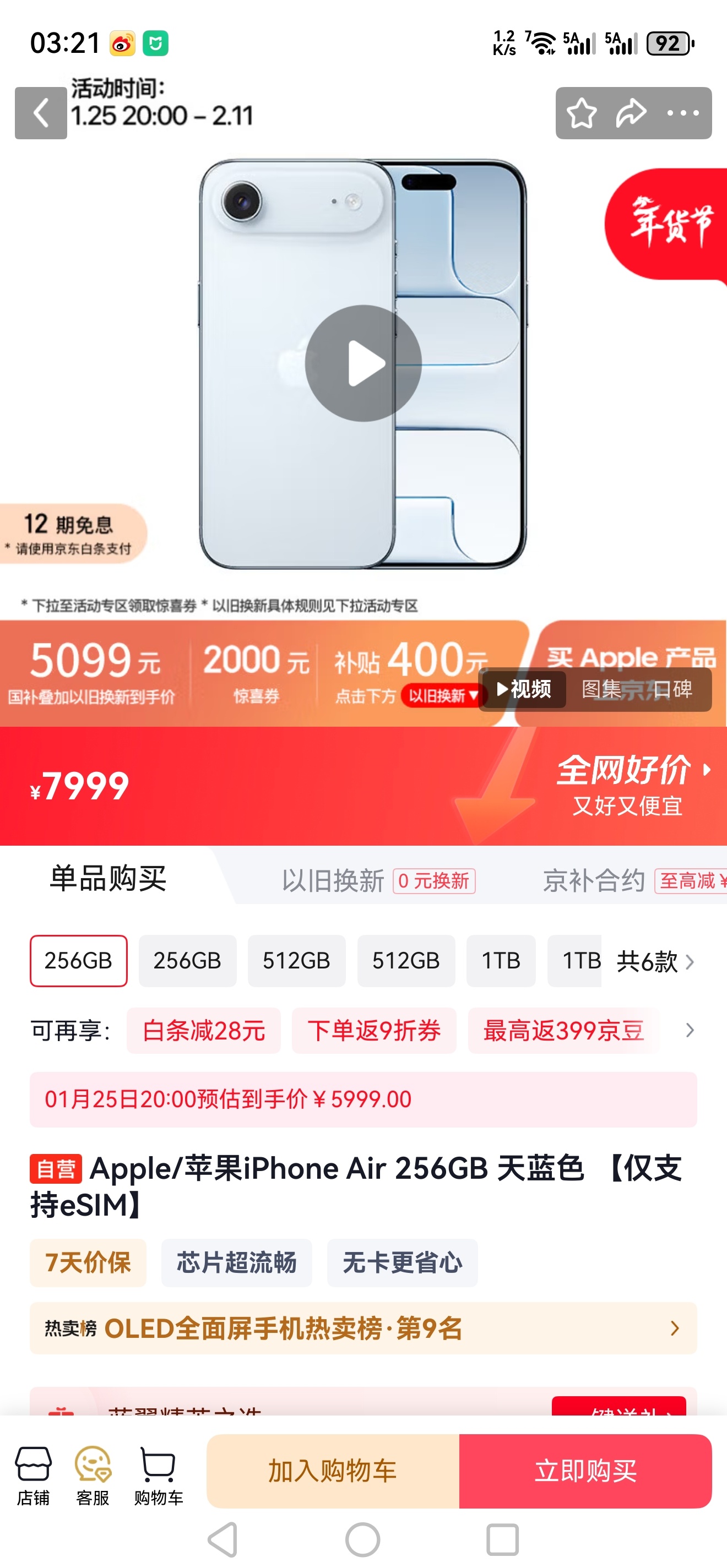 iPhone Air官方价格暴跌2000元 iPhone Air国补叠加以旧换新,到手价4899元,iPhone 17到手价5099元,iPhone 17 Pro到手价7699元,iPhone 17 Pro Max到手价8599元。已经预感到过年时人手一部新iPhone了