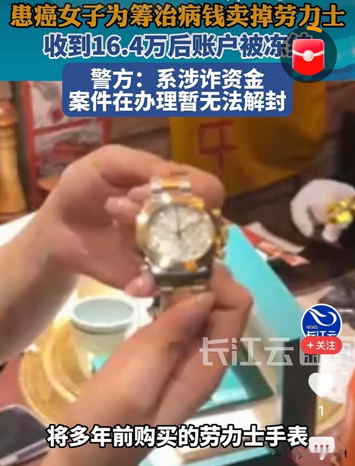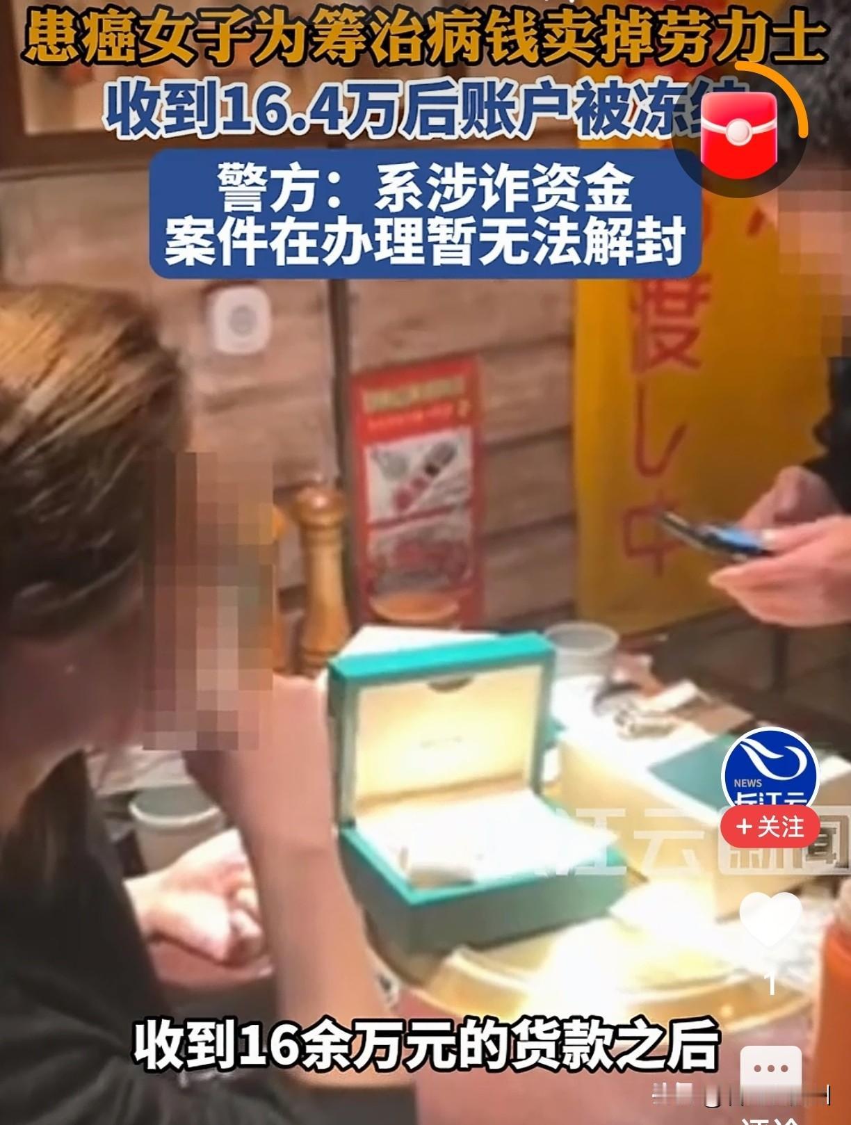 救命的钱竟是骗子的钱?患癌女子卖表遭冻结,谁之过? 救命钱刚到账,就被冻了!一位患癌女子为凑治疗费,忍痛卖掉自己最后的贵重物品——一块劳力士表。可钱刚进卡,警方一纸通知来了:账户冻结,资金涉诈!女子当场崩溃,这是她熬过化疗的最后希望。我懵了,你们呢? 事情就这么简单,又这么残酷。一个等着救命的病人,一个来自卖表的买家,一笔明明谈好的交易——如今却成了“涉诈资金”。警方回应白纸黑字:钱,确实涉嫌诈骗。可这女子从头到尾不知道买家底细,她只是急着用钱啊!一边是滚烫的救命钱,一边是冰冷的“涉案财物”,你说这叫人怎么选? 更让人揪心的是背后的两难:如果严格执法,这笔钱就该冻结,哪怕它关乎一条人命;但如果人命关天,能否网开一面?女子哭着问:“如果这钱真是骗来的,我该怎么办?我的病还能等吗?”而法律的声音同样沉重:一旦资金涉诈,就必须拦截,否则更多人的血汗钱可能流失。 可问题来了:一个重病在身、只想变卖私人物品自救的人,哪有余力去核查每笔转账的来源?今天是她,明天会不会是你我?当我们通过二手平台交易手机、首饰,收到一笔陌生转账时,我们是否也可能突然沦为“涉诈环节”中的一环? 类似的案例其实不少。有人卖游戏账号收钱后被冻卡,有人收货款却卷入洗钱链——一旦碰上,账户秒变“冰封”,申诉之路漫长又绝望。执法的刚性必须维护,但普通人的善意与困境,又该由谁来缓冲? 说到这里,心里堵得慌。我们都痛恨骗子,但当我们自己也可能在不知情中成为“链条末端”,当重病之家唯一的活路被突然斩断——法与情之间,那条线究竟该划在哪里?警方的做法或许合规,但合规之外,是否还有更温暖的解法?比如加快核查、协调医疗救助?毕竟,救命等不起。 这件事最扎心的或许不是“钱被骗”,而是“善意被利用,绝望无人接”。我们每个人都可能在某刻成为弱者,都希望绝境中能被拉一把,而不是被规则卡住咽喉。执法的目的是保护人,而不是压垮人。 如果你是执法者,会怎么处理这笔“救命钱”?如果你是这名女子,又该如何自救?评论区等你,一起聊聊这份沉甸甸的两难。 患癌女子卖表救急账户被冻结 涉诈资金该一刀切吗 情与法的边界