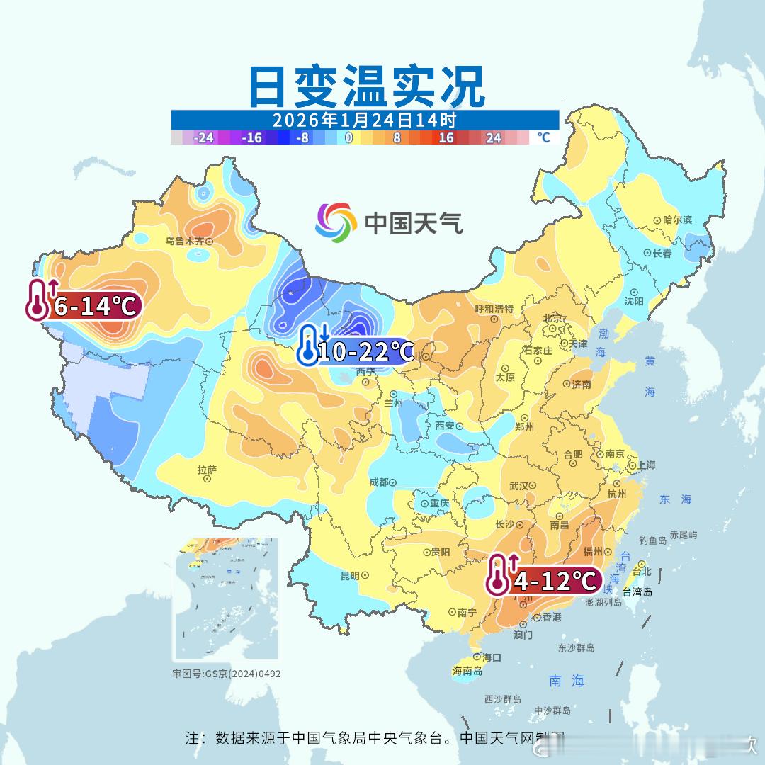 【先回暖再降温】对比昨天下午和今天下午,10℃线从广州-福州,北抬到了武汉-合肥以北的区域。对应今天中东部继续升温。从卫星监测看,河南东部、安徽北部一带的积雪也正在消融。不过新一股冷空气已经开始影响甘肃西部,导致明显降温。未来2天,中东部多地气温也会出现下降。