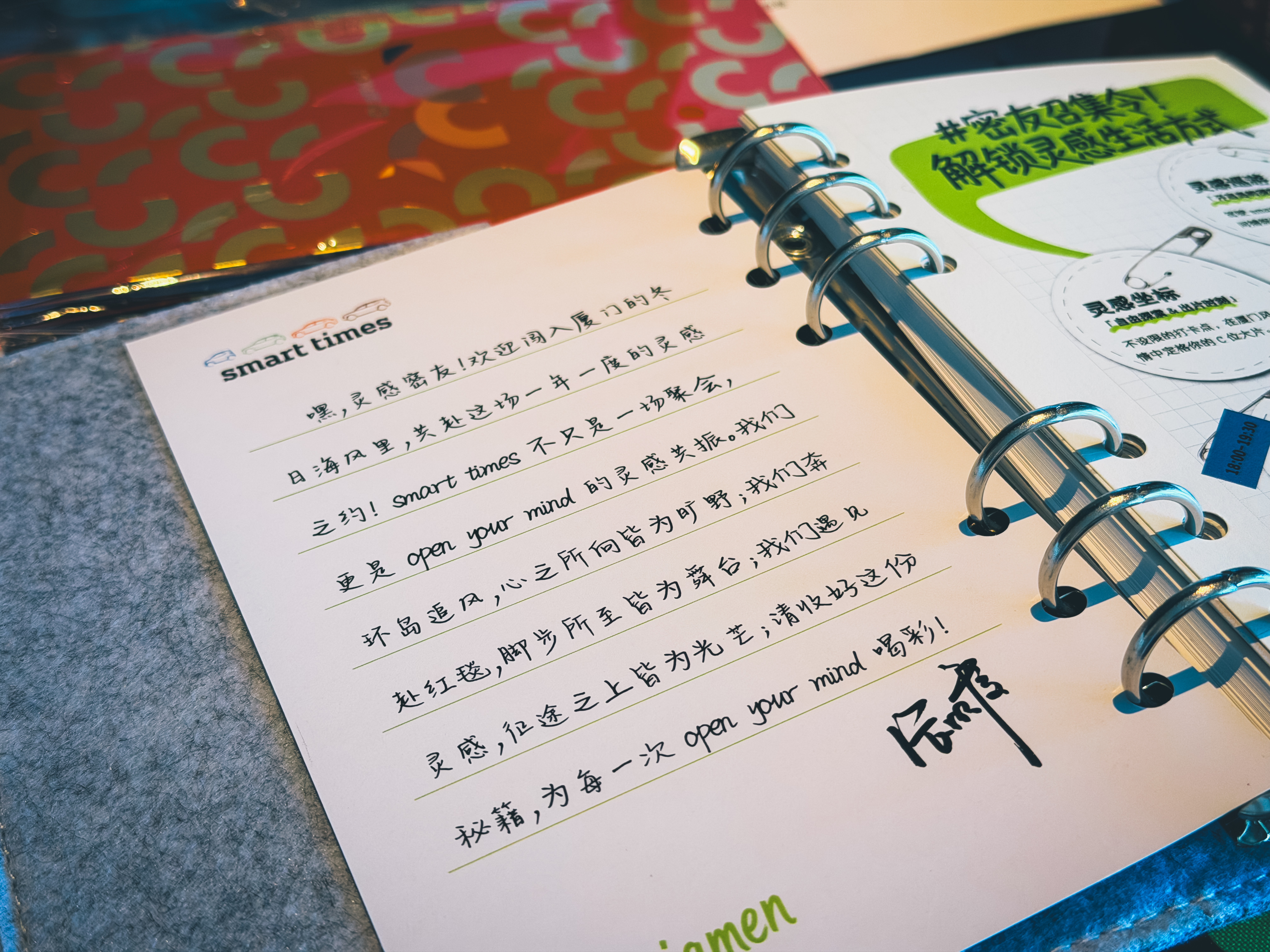 “又”来参加 smart times。这是属于 smart 车主的一个专属活动,从2000年车主自主发起,到现在转变为 smart 品牌一年一度的品牌盛典大 party, 已经25年了。这次活动城市选在了有“海在城中、城在海上”美誉的厦门。活动会场在海峡大剧院,也是中国电影金鸡奖御用的殿堂级会场。听说还给每位 smart 密友准备了和电影明星一样的红毯场景。所以,作为 smart 车主,品牌的情绪价值整得相当到位。酒店小礼物也很贴心:有城市游玩的灵感手册,上面 smart 品牌 CMO Mandy 手写的「open your mind」寄语,还有如何玩转厦门的超详细攻略。有当地特色的凤梨酥,乌龙茶。还有给 smart 占比超高的女性车主的特饮。当然,还有喜气洋洋的过年小礼物…我第一次参加 smart times 是2023年,和老左一起。老左见证了这个品牌的诞生,还专门写了书。我们当时还拍了一个采访车主的视频。smart 车主真是品牌忠诚度很高的一群人,有人当时开着纯电的 smart 精灵1号从天津到苏州那次 smart times 会上说 smart 要做越野,还是些概念图,没想到两年后我们就看到了精灵5号。这次 smart times 要发新的艺术家限定款,同时2026年还会有2款新车。这个个性,活波,独特有温度的品牌还在继续 open mind 探索新边界,满怀期待…smart times灵感大赏在厦门