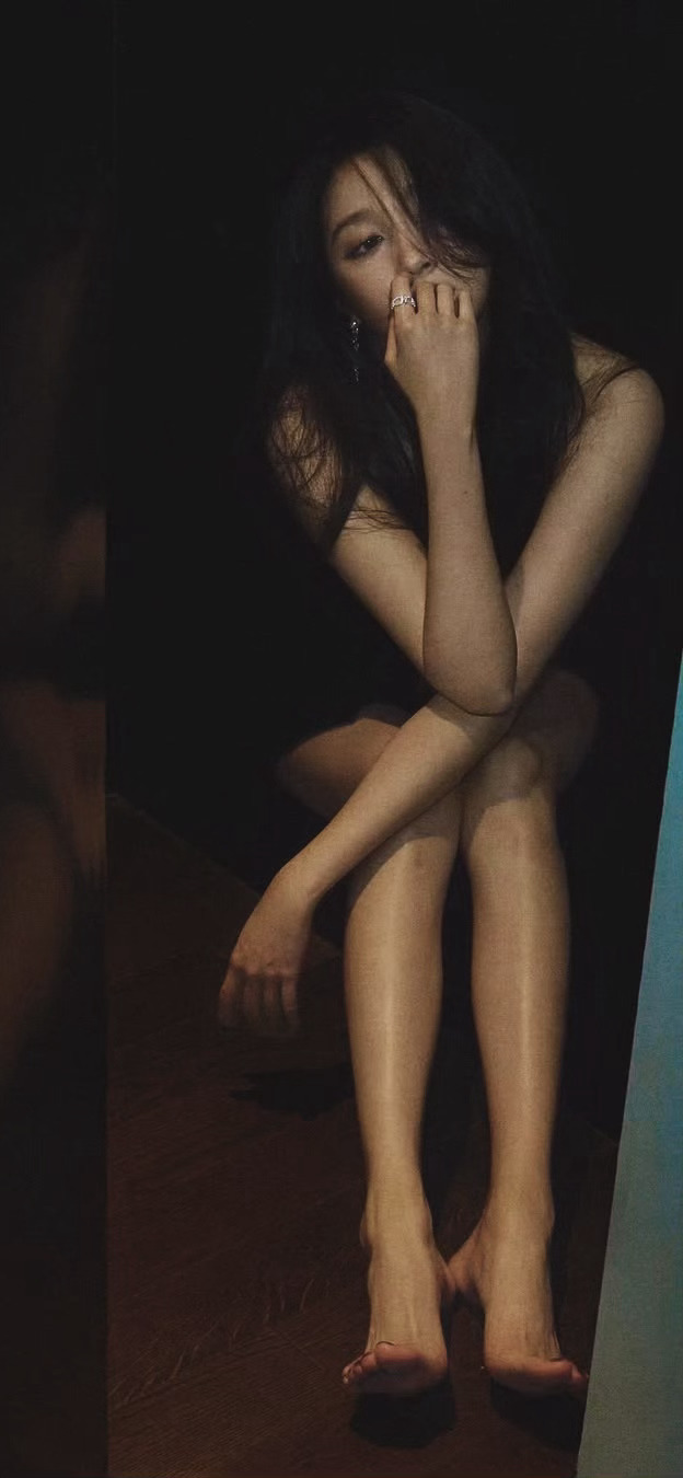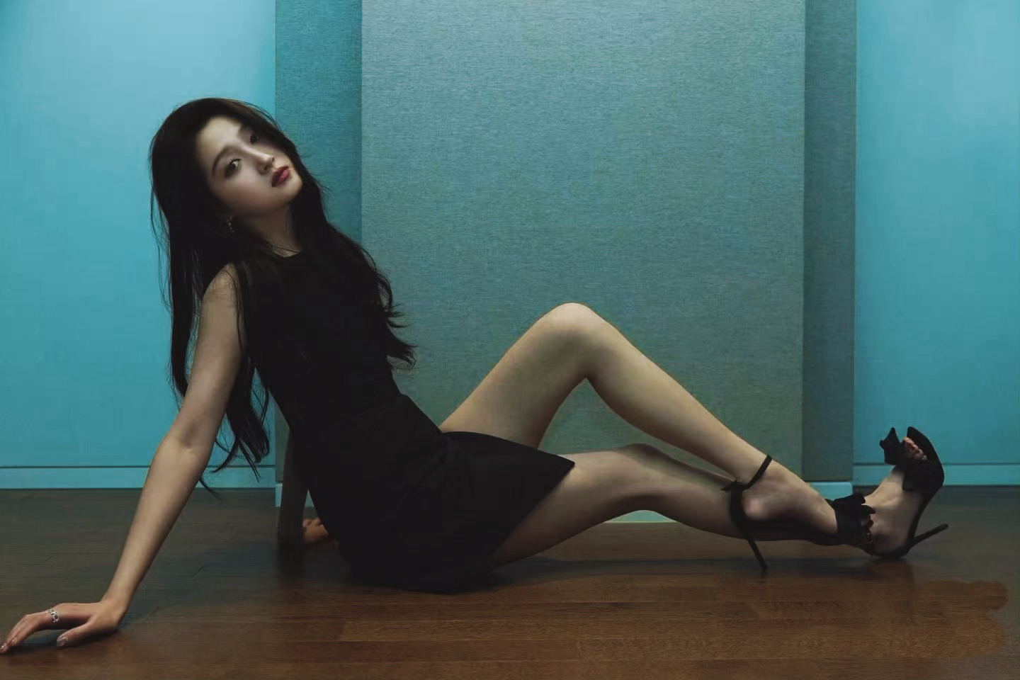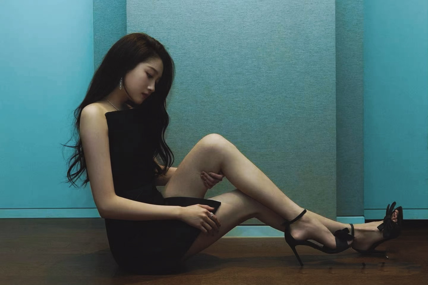 关晓彤 x 卷发黑裙高跟·这腿太权威