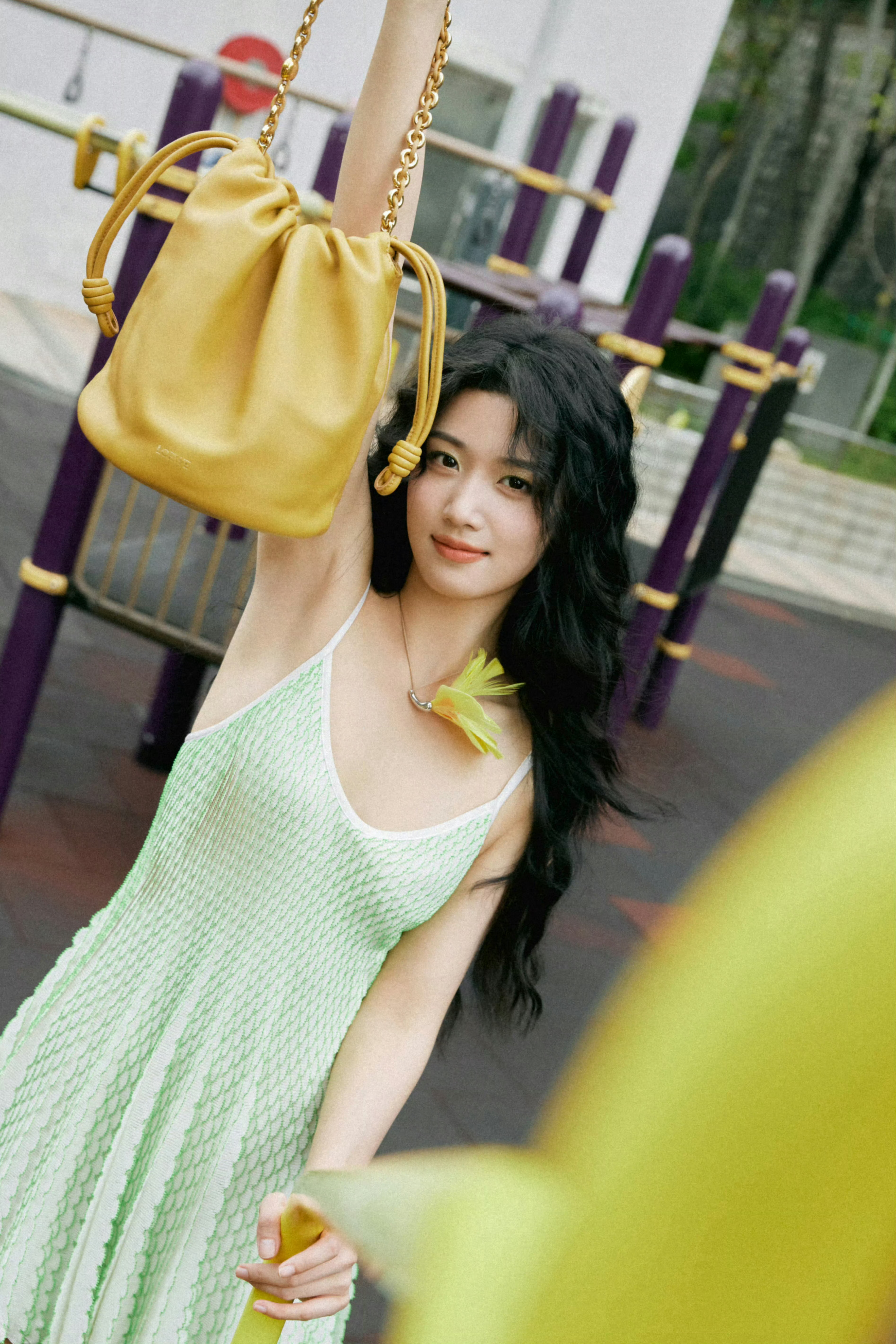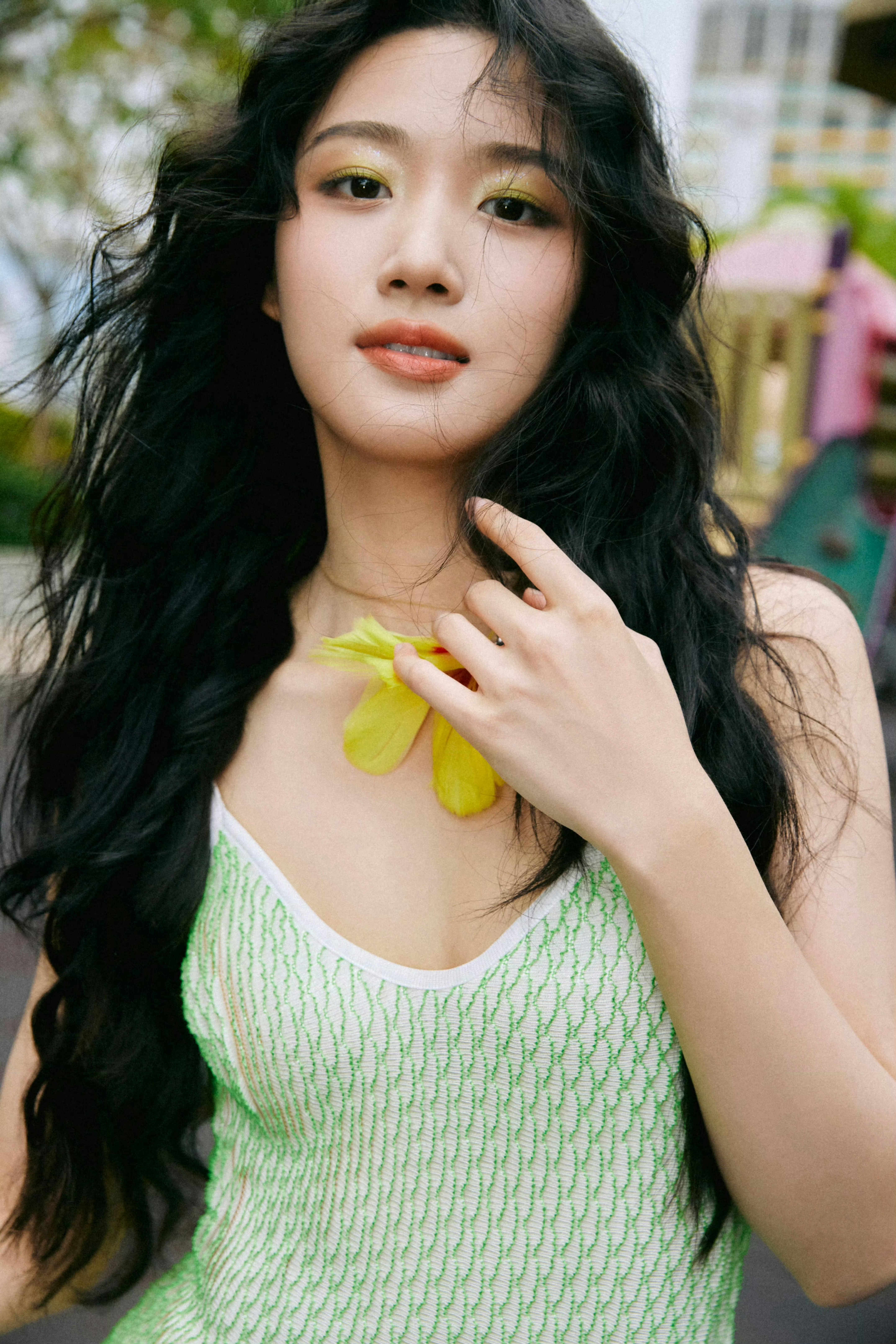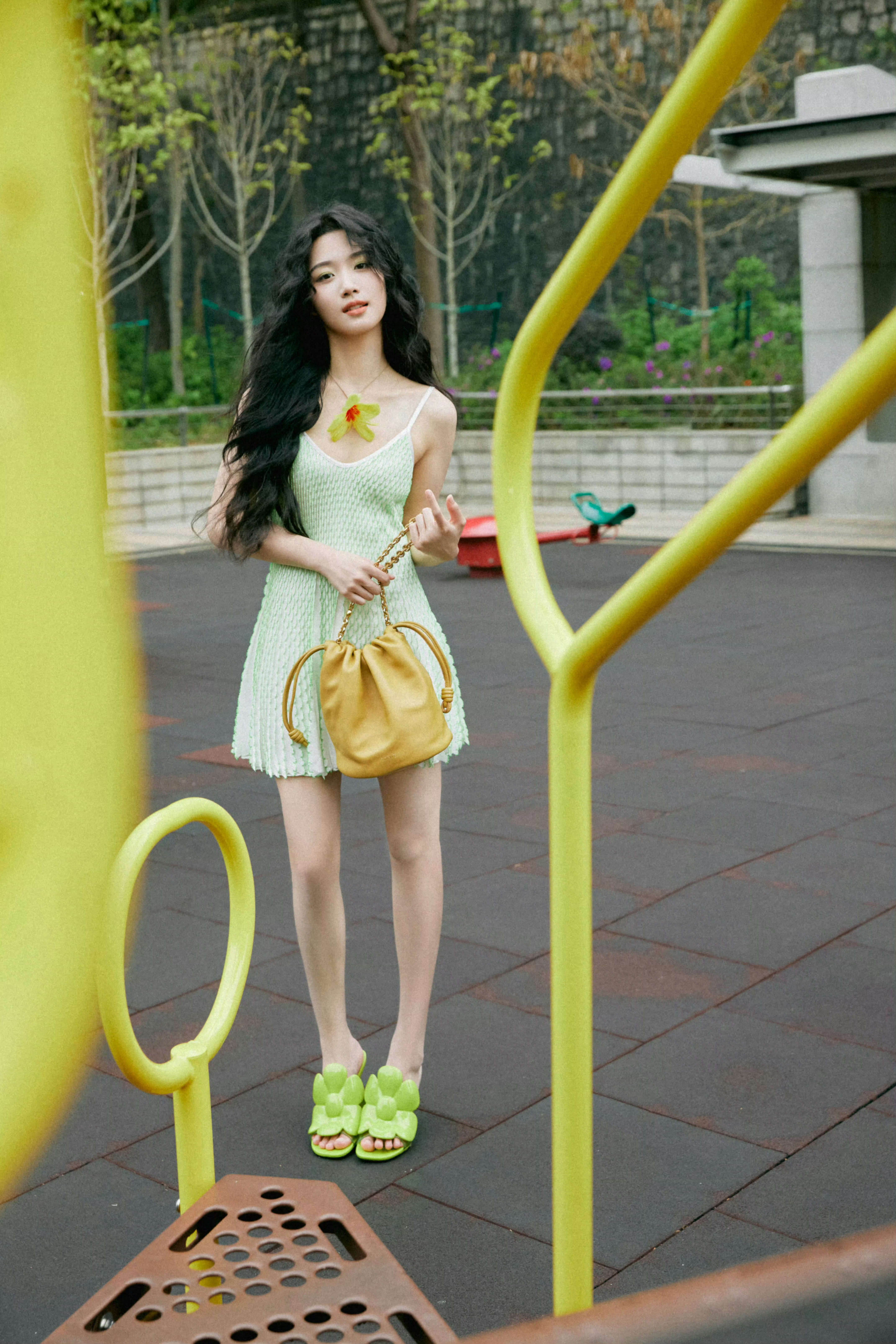 卢昱晓 x 绿色V领吊带连衣裙·清新怡人 卢昱晓10个月瘦了一大圈