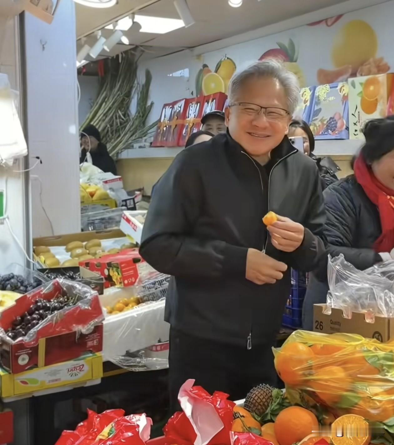 黄仁勋又来了,刚到上海就去逛菜市场,全程有说有笑的,非常接地气和亲民。 而且这次黄仁勋居然穿的外套是我国流行的“司局级夹克”,再度表现出他高情商和要拉近距离的心思。 众所周知,黄仁勋的黑皮夹克是他出席各种场合最常常穿的外套,但是来中国黄仁勋却有特别安排,去年中旬为了H20可以在中国销售,来中国参加链博会时特地穿上唐装,致辞时又说了一段普通话,但是最后都功亏一篑。 这次2026年一开始又来中国,还穿上体制内的夹克,表面上看是情商高,套近乎,实际上当然是为了H200能够被允许在中国销售。 只能是,为了保住在中国市场的份额,夹在中美高科技的竞争中,黄仁勋也是使出浑身解数了。