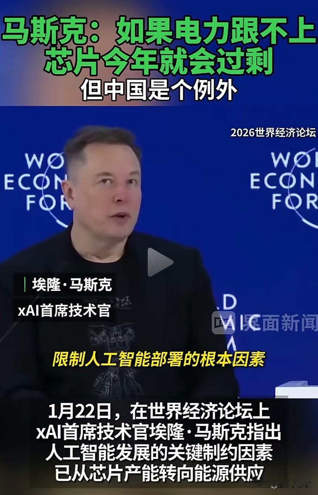 光伏,电力迎来重磅利好,芯片出现了利空 马斯克在人工智能大会上表示:如果电力跟不上,芯片今年可能就会过剩。除了中国。 早前微软就曾表示过由于电力的不足,可能会出现很多高端芯片只能在仓库里面。 现在世界上很多国家都因为电力的不足出现了制造业的停滞,人工智能更是用电大户,现在如果彻底发展人工智能只有中国不会缺电,因为越是高端的芯片,消耗电力越多。 中国的光伏,风电已经承担了很多电力供应,如果发展人工智能,很多发达国家就会补充电力,而火电基本已经饱和,现在就是发展光伏和风电,这对于光伏又是一个发展的机会。