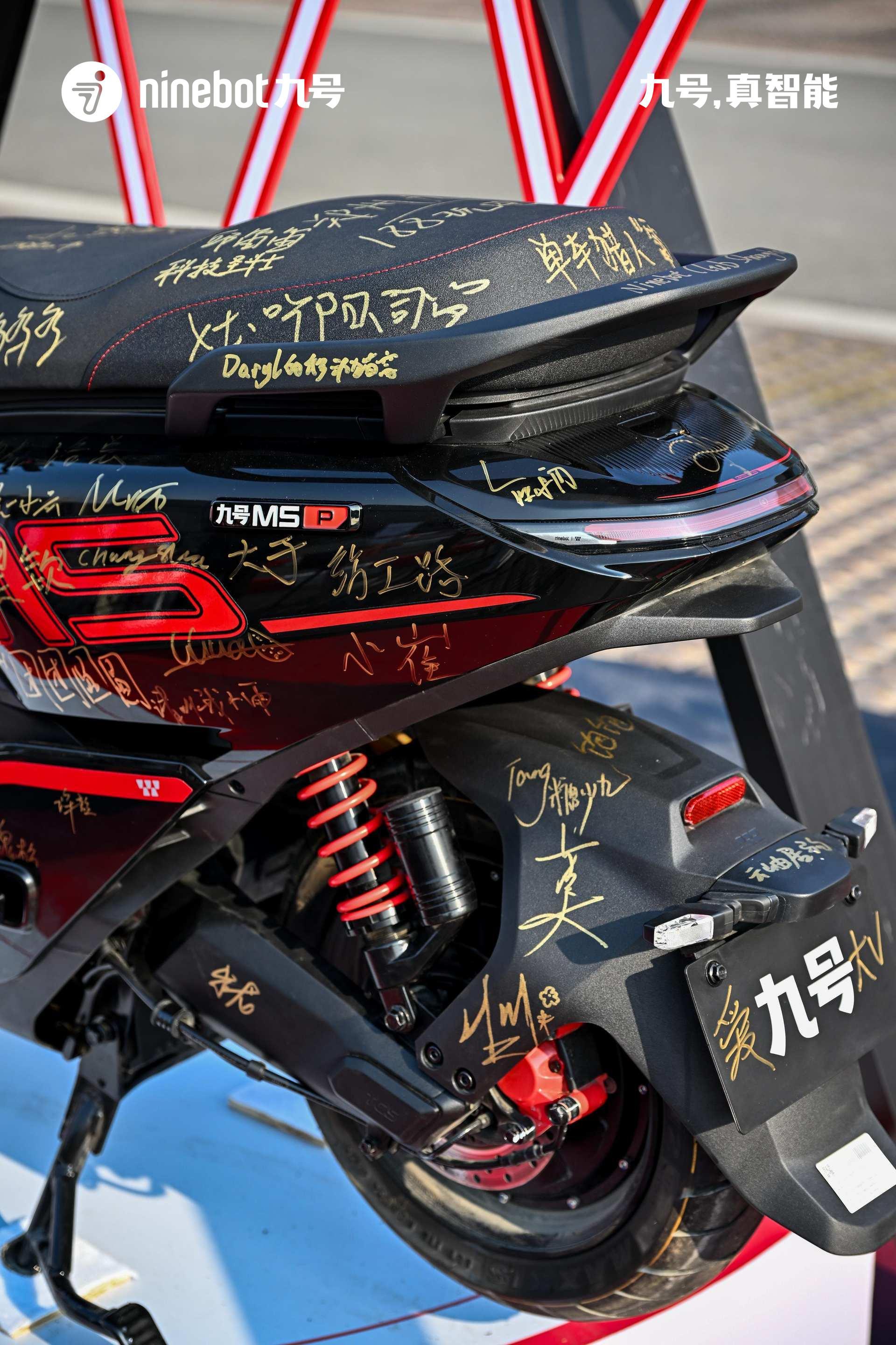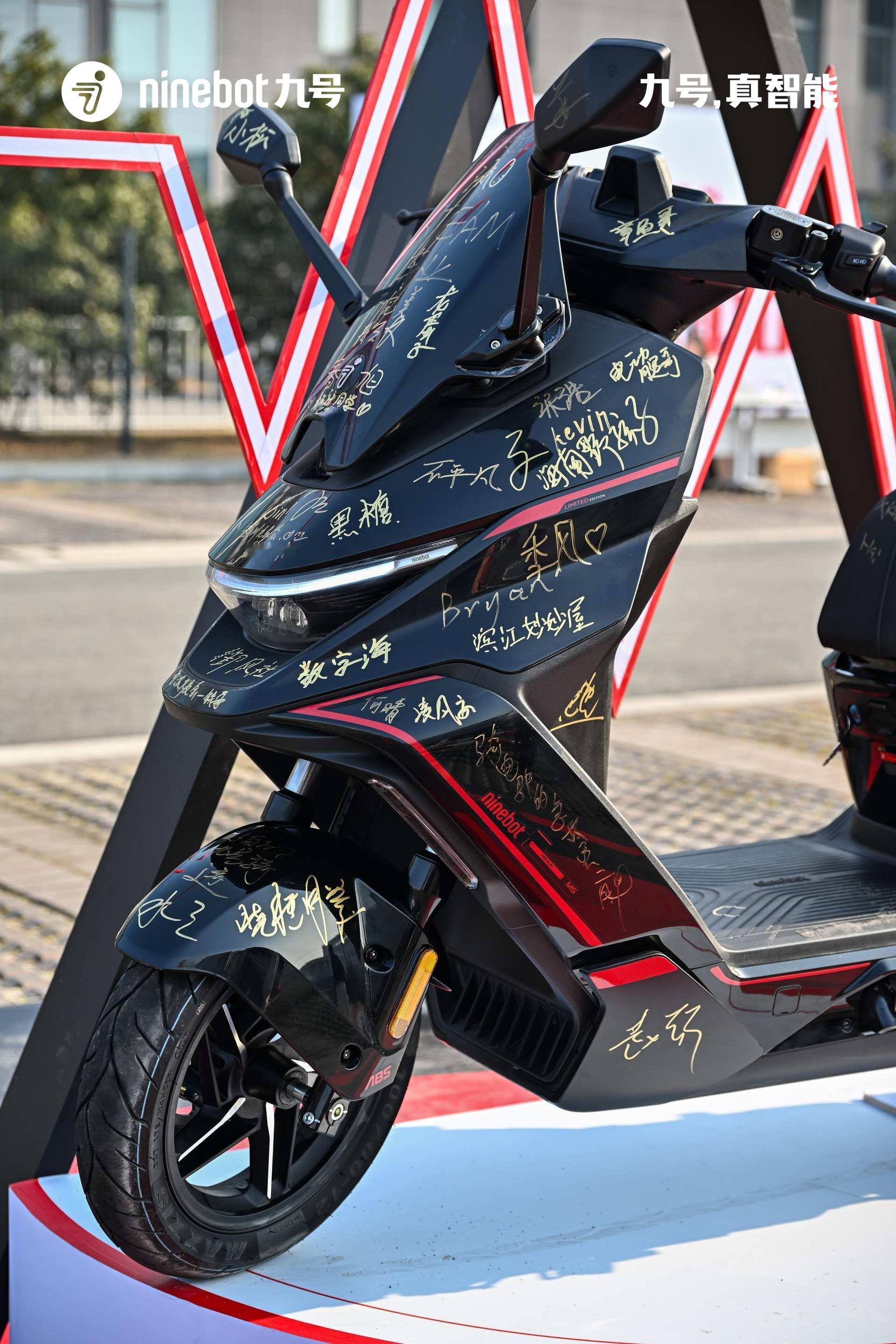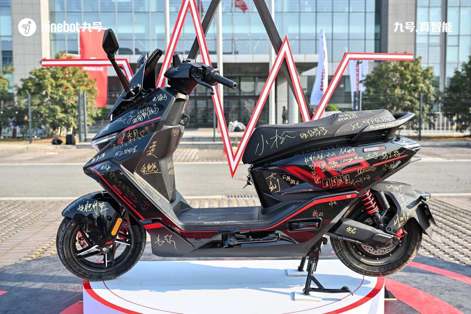 今天现场还发布了九号M5 P千万台纪念版,限量1999台,已经售罄,两万元的电摩都卖的这么好,真的强。1、原厂超级电池,超长续航:搭载新能安 72V90Ah大单体电池;M5 P 工况续航185km,这个续航比很多老头乐都长2、头号空间,更强装载力:超大空间+333mm斜踏/426mm*410mm平踏+加大双前置物盒+加深立方座桶(可轻易放下带尾翼的全盔or两顶小尺寸3/4盔)3、头号底盘,骑行更稳:达喀尔车队专业调校AXC-S车架(扭转刚度高达1154.3N·m/deg)+双通道阀式ABS+TCS牵引力控制系统+33芯前减震+预载无级可调气瓶后减震+前:240mm五孔固定式制动盘+对向四活塞辐射卡钳/后:200mm固定式制动盘+对向双活塞卡钳+玛吉斯半热熔轮胎4、更多细节,体验值拉满多重人机适配(132°大角度斜踏/1.65m-1.85m舒适驾骑体验)+ 四点式铝合金后扶手(后座乘客双手自然垂下即可握持)+前轮机械式驻车(斜坡停车不怕溜坡)+铝合金环式挂钩(颠簸无惧物品脱出)+椅垫开启支撑设计(最大开度可固定)+座桶内挂钩 (空间分层/挂眼镜袋等物品或饮料便当)+20A充电器头号性能:更快更好骑零极X1000控制器(M5 P 千万台纪念版),5、极速120km/h,电机额定功率10kW,峰值功率16kW满配智能配置:5英寸TFT RideyFUN智驾系统+鼹鼠控+真智能3.0+玩家模式 NEW+陡坡缓降NEW+双路行车记录仪+双向油门+ALC全境光幕大灯(近光15000cd,远光65000cd)宽体运动机甲外观,配色经典耀眼· 纪念版配色,夜行更耀眼。今天晚上抽奖一等奖是一台九号M5 200,售价18999元,快两万元的电摩托,被一个穿始祖鸟的九友抽走了,好运啊。恭喜这个九友。 常州·九号科技有限公司