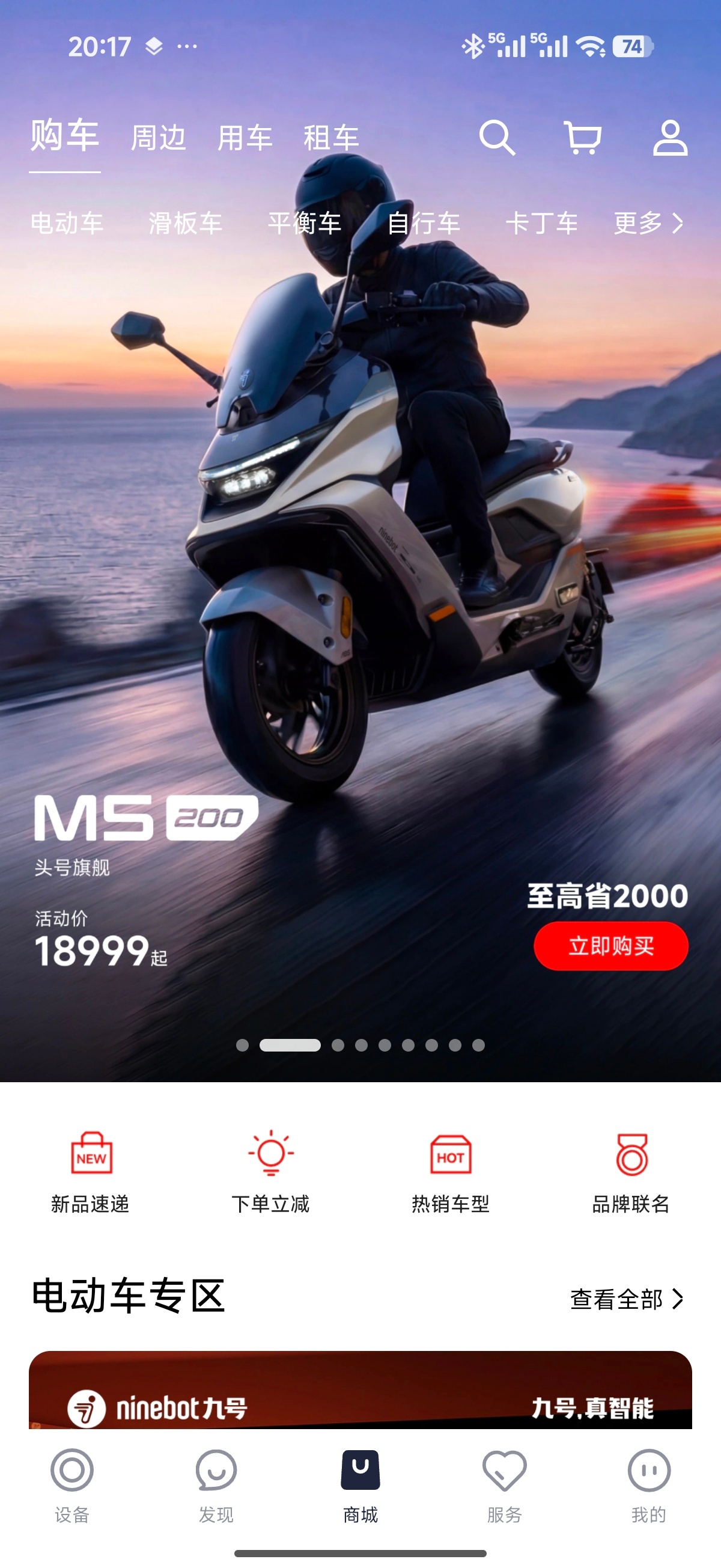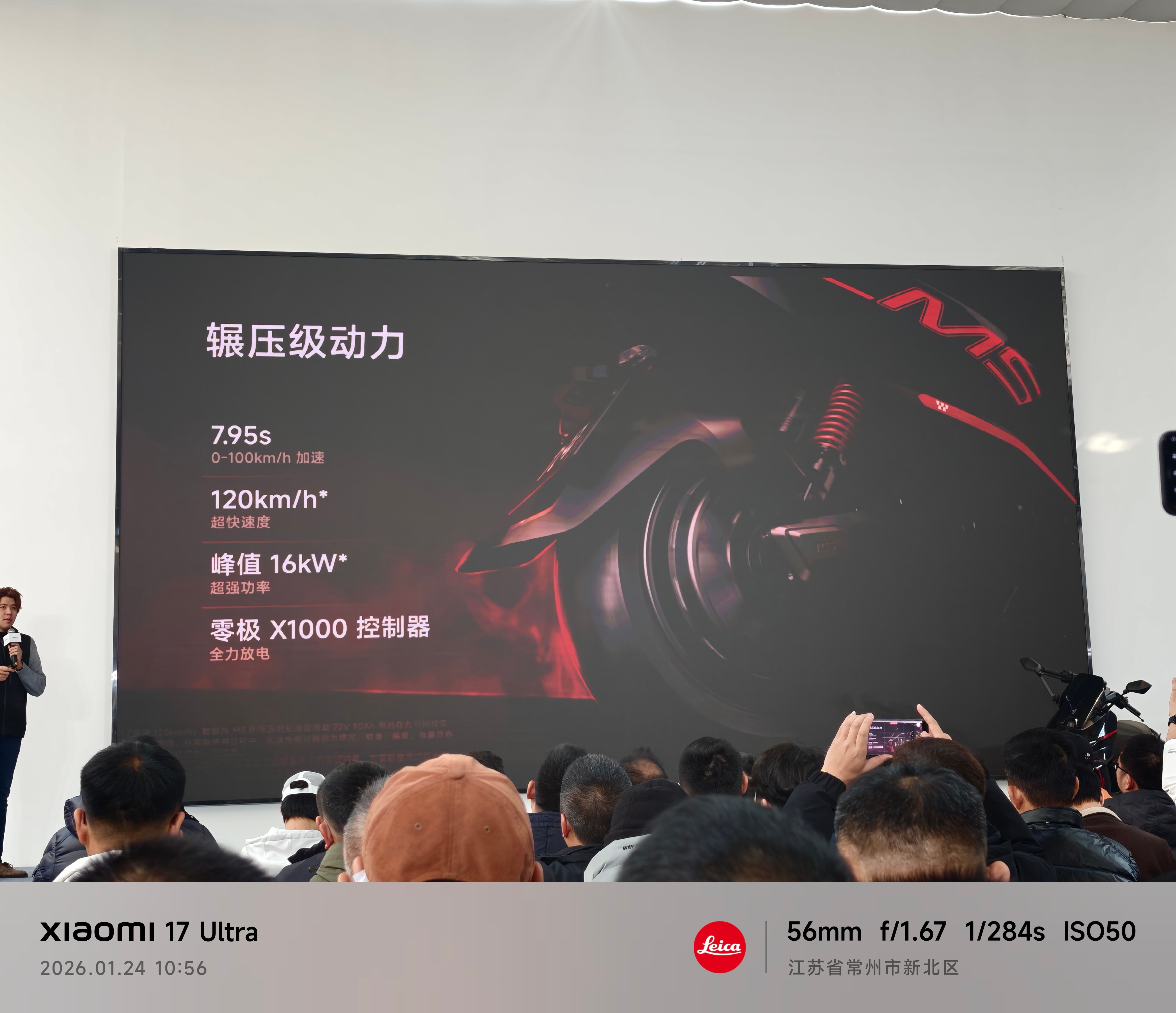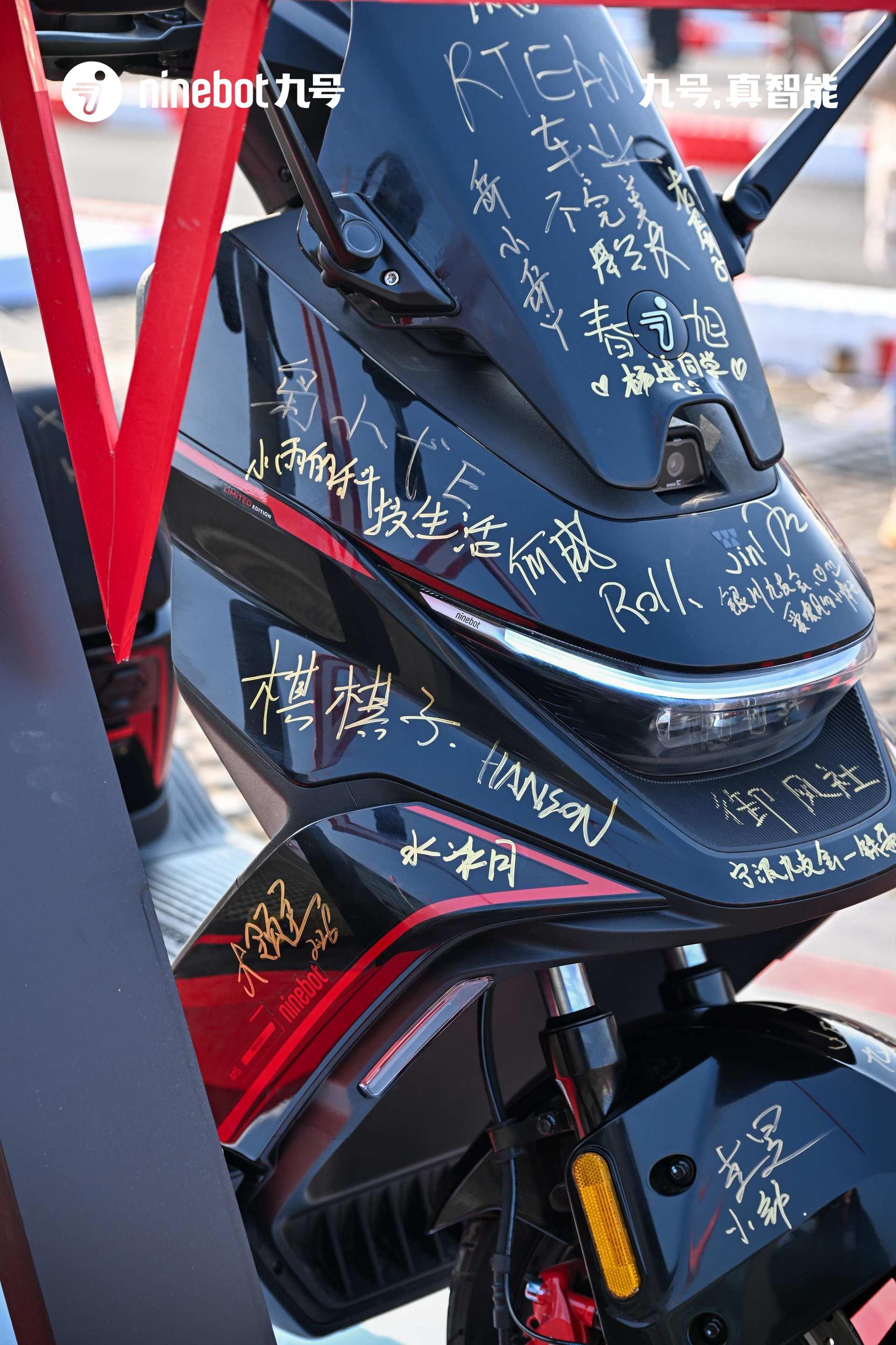 今天现场还发布了九号M5 P千万台纪念版,限量1999台,已经售罄,两万元的电摩都卖的这么好,真的强。1、原厂超级电池,超长续航:搭载新能安 72V90Ah大单体电池;M5 P 工况续航185km,这个续航比很多老头乐都长2、头号空间,更强装载力:超大空间+333mm斜踏/426mm*410mm平踏+加大双前置物盒+加深立方座桶(可轻易放下带尾翼的全盔or两顶小尺寸3/4盔)3、头号底盘,骑行更稳:达喀尔车队专业调校AXC-S车架(扭转刚度高达1154.3N·m/deg)+双通道阀式ABS+TCS牵引力控制系统+33芯前减震+预载无级可调气瓶后减震+前:240mm五孔固定式制动盘+对向四活塞辐射卡钳/后:200mm固定式制动盘+对向双活塞卡钳+玛吉斯半热熔轮胎4、更多细节,体验值拉满多重人机适配(132°大角度斜踏/1.65m-1.85m舒适驾骑体验)+ 四点式铝合金后扶手(后座乘客双手自然垂下即可握持)+前轮机械式驻车(斜坡停车不怕溜坡)+铝合金环式挂钩(颠簸无惧物品脱出)+椅垫开启支撑设计(最大开度可固定)+座桶内挂钩 (空间分层/挂眼镜袋等物品或饮料便当)+20A充电器头号性能:更快更好骑零极X1000控制器(M5 P 千万台纪念版),5、极速120km/h,电机额定功率10kW,峰值功率16kW满配智能配置:5英寸TFT RideyFUN智驾系统+鼹鼠控+真智能3.0+玩家模式 NEW+陡坡缓降NEW+双路行车记录仪+双向油门+ALC全境光幕大灯(近光15000cd,远光65000cd)宽体运动机甲外观,配色经典耀眼· 纪念版配色,夜行更耀眼。今天晚上抽奖一等奖是一台九号M5 200,售价18999元,快两万元的电摩托,被一个穿始祖鸟的九友抽走了,好运啊。恭喜这个九友。 常州·九号科技有限公司